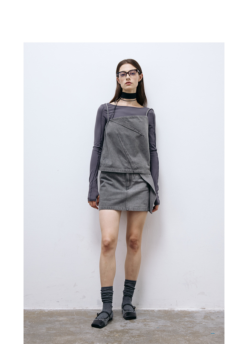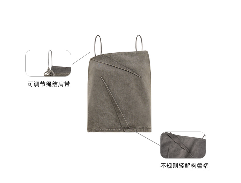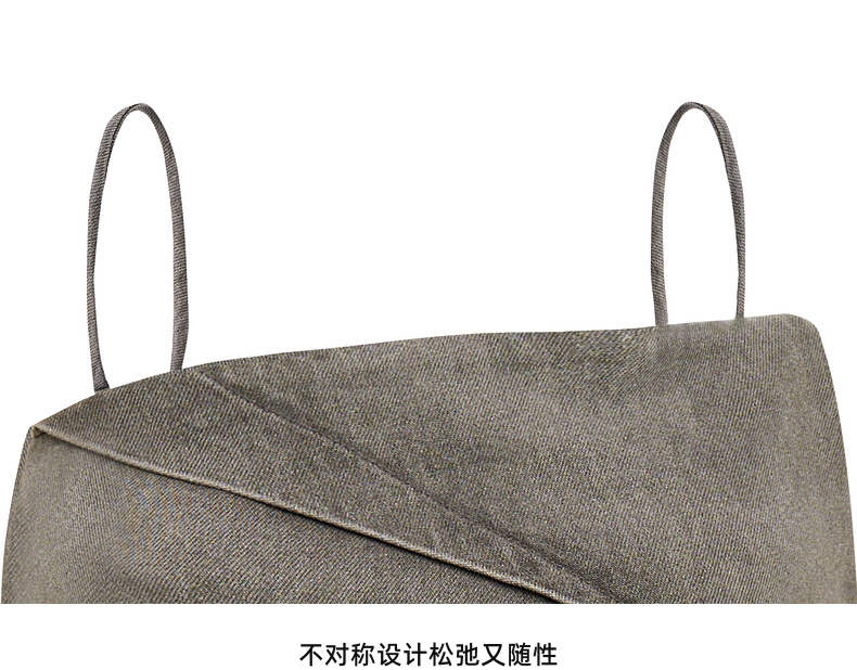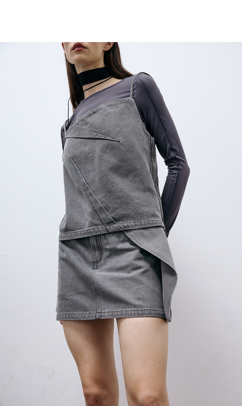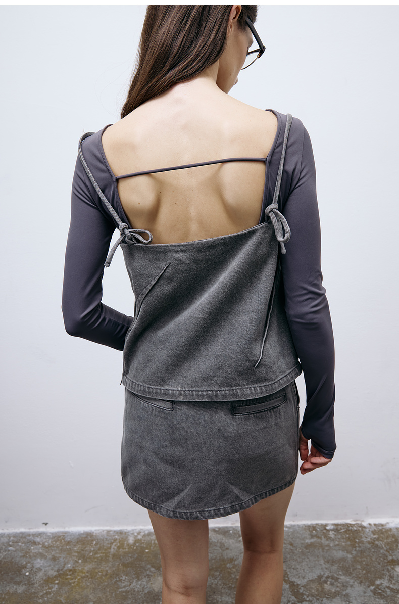 lost in echo2025春夏新款时尚灰色直身牛仔吊带背心A字短裙套装