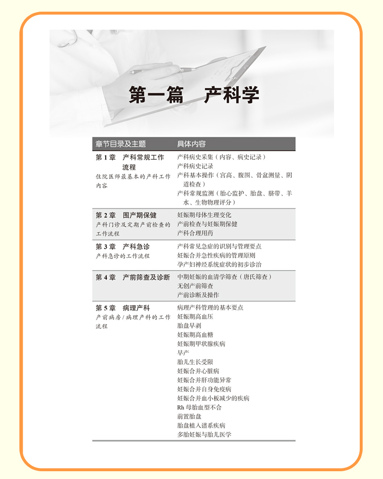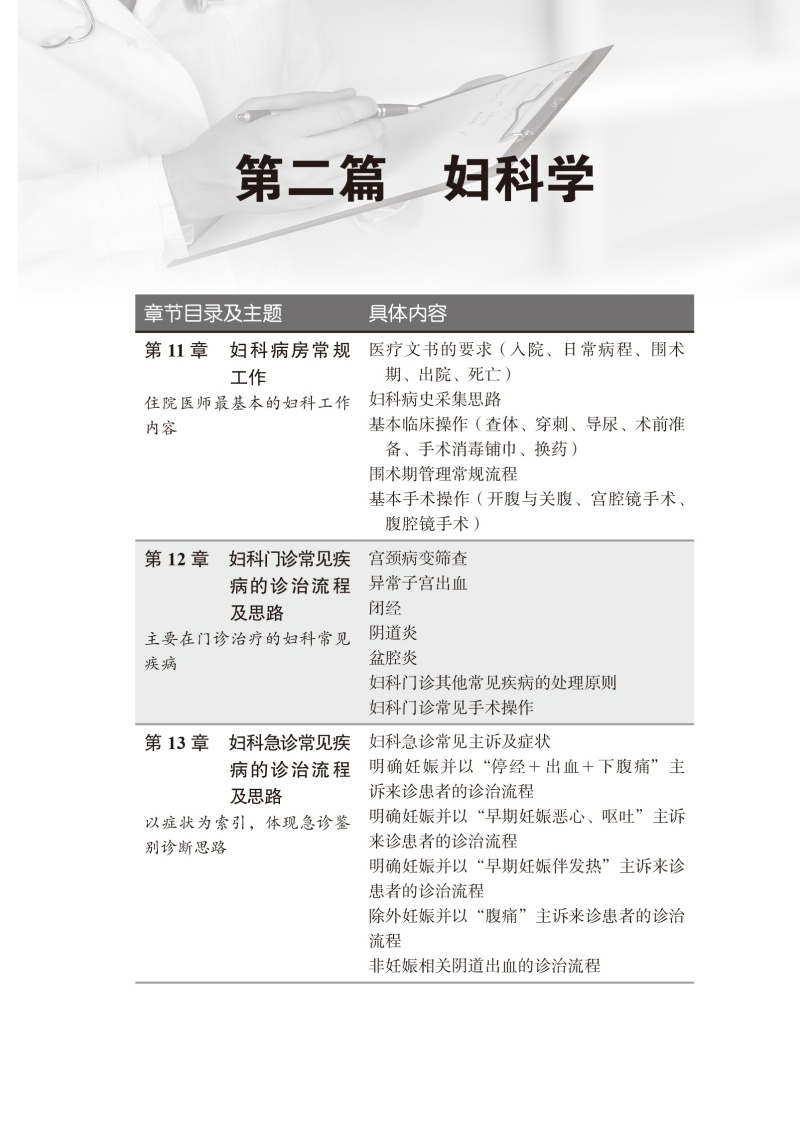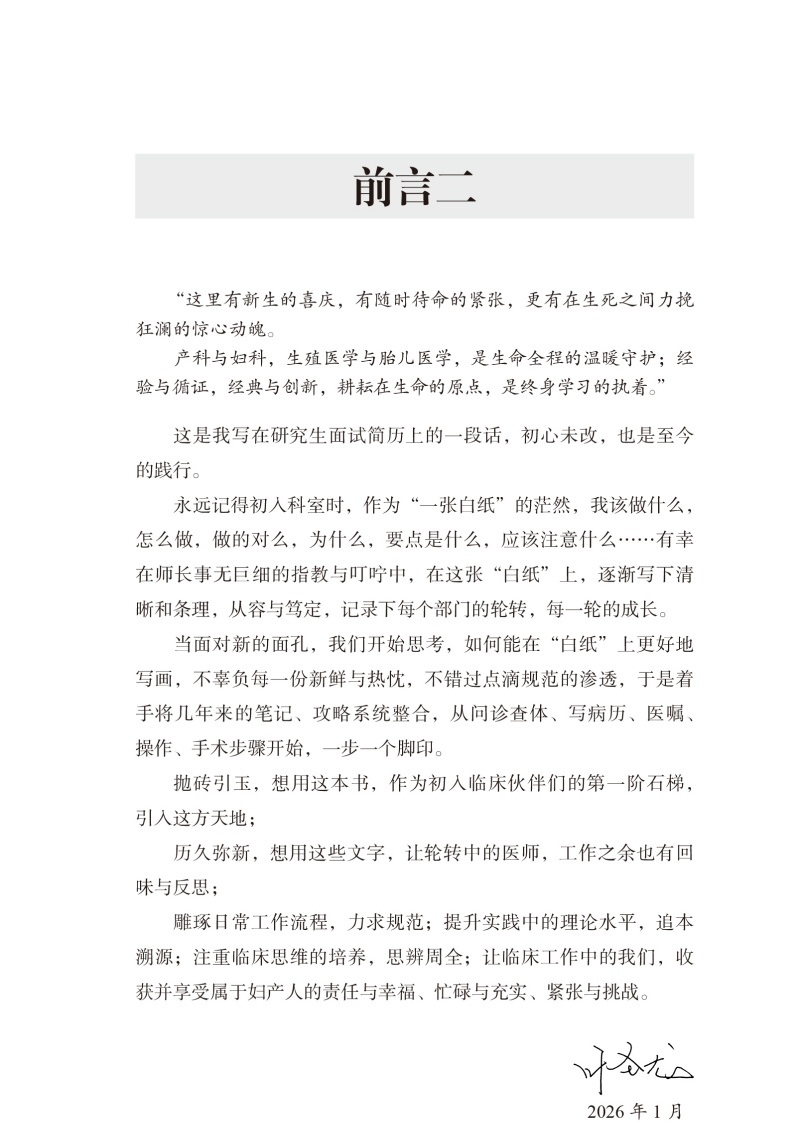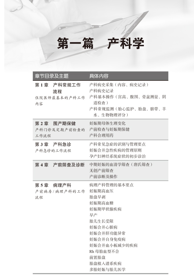 作为妇产科医疗团队中的新生力量,住院医师的成长与发展不仅关乎其个人职业生涯的走向,更直接影响着患者的诊疗质量和就医体验。本书是妇产科知识的汇总,也是一名优秀的住院医师一路走来的经验沉淀,更是引导住院医师树立正确职业观、增强责任感的良师益友。它涵盖了从接诊患者时的细致问诊,到开具医嘱时的严谨规范,再到围术期管理的全面考量等各个关键环节,是兼具实用性与指导性的行动指引。通过这本手册,住院医师能够系统地学习妇产科临床工作的流程与要点,将理论知识与实践操作紧密结合,不断提升自身的临床技能和应急处理能力。