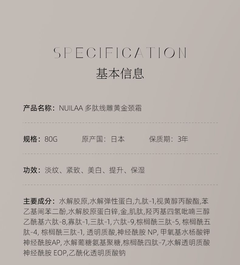 【预售 急单慎拍】日本nuilaa美颈霜颈纹霜淡化颈纹提拉紧致抗皱纹美白脖子皱纹神器