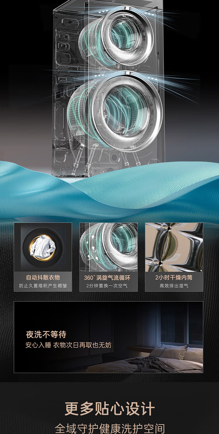 卡萨帝(Casarte)17公斤双子滚筒洗衣机 洗烘一体机 养护空气洗 洗净比1.28 衣物分区洗 绿标 精华洗 汉麻灰 17公斤双子洗烘+健康分区洗CS HB17LWAHGU1