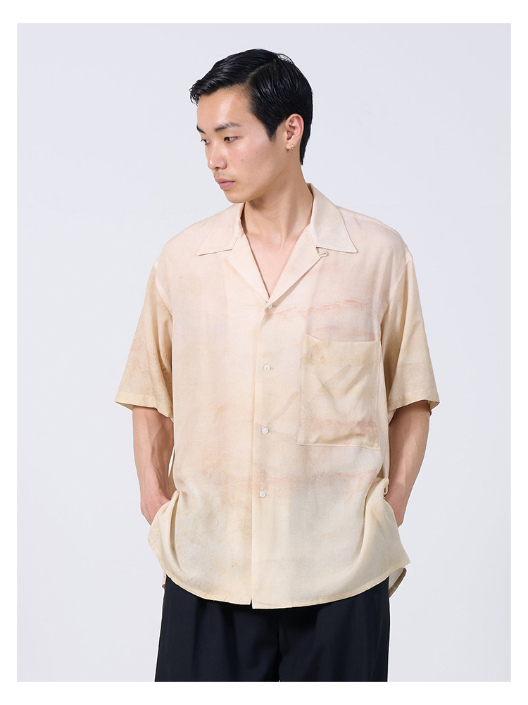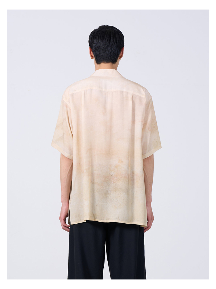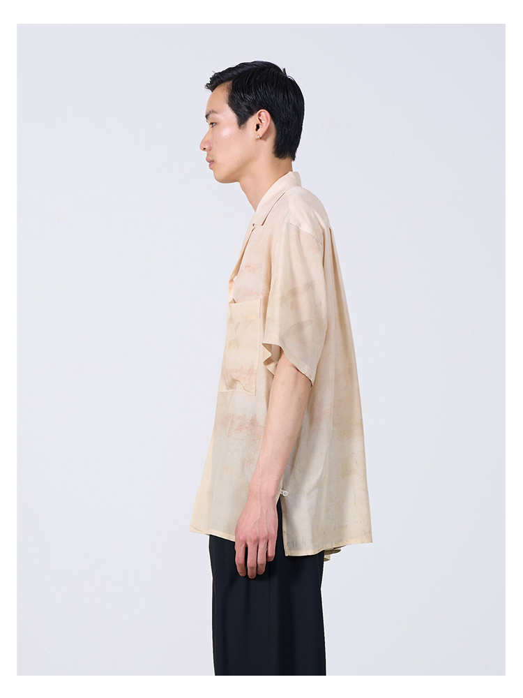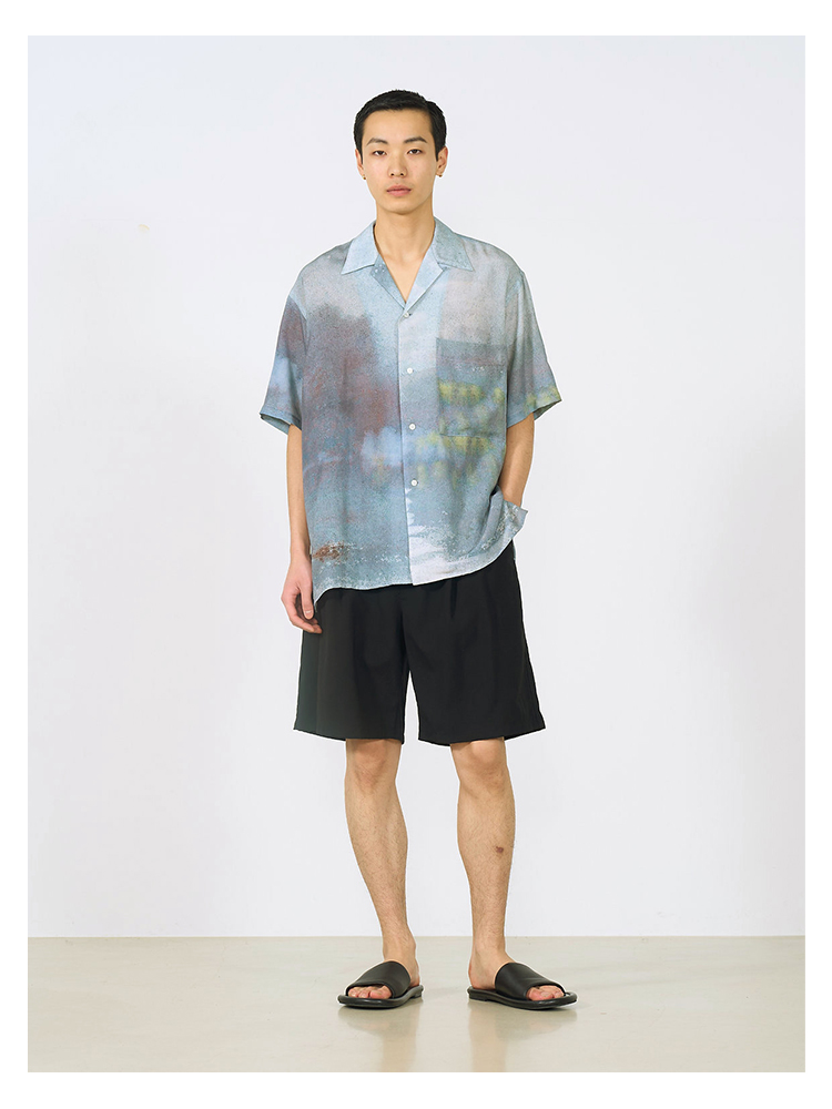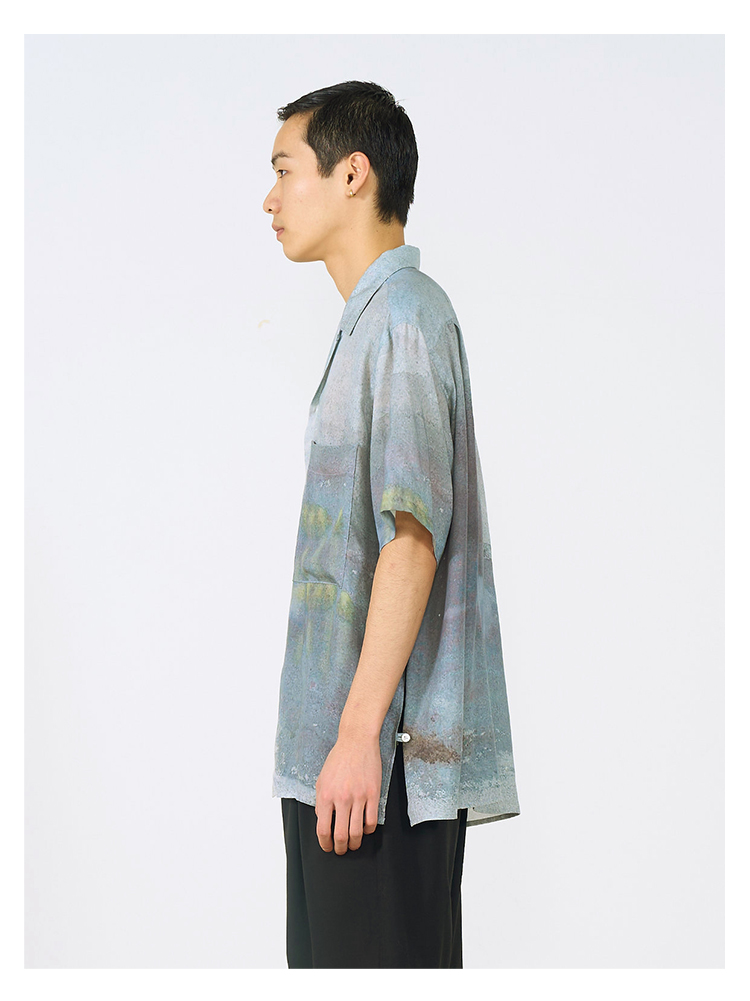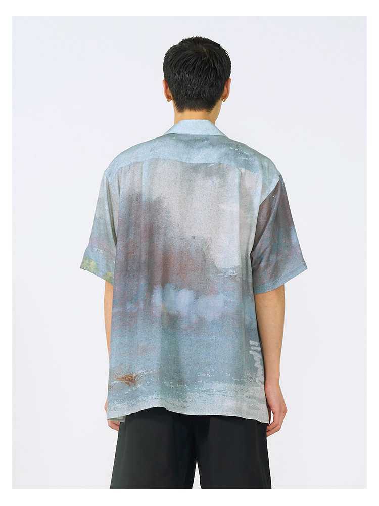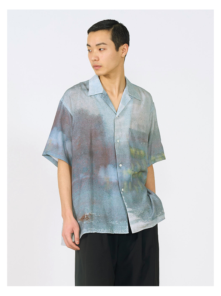 YOKE LANDSCAPE PRINTED OPEN COLLAR艺术家合作系列天丝短袖衬衫