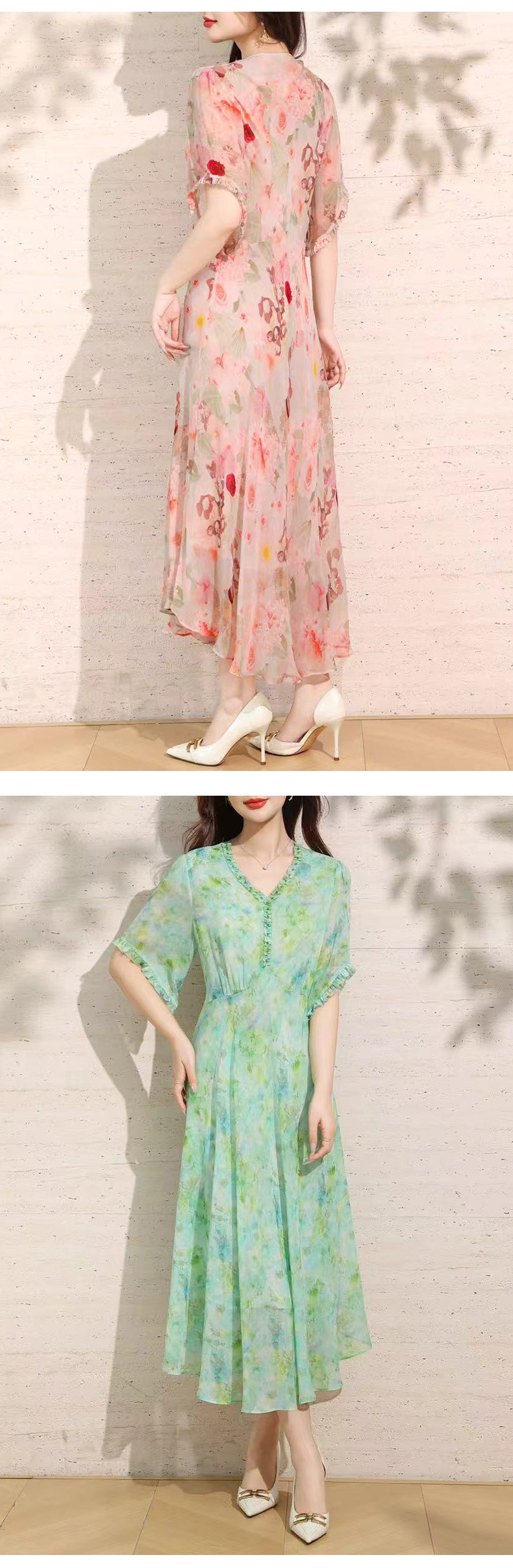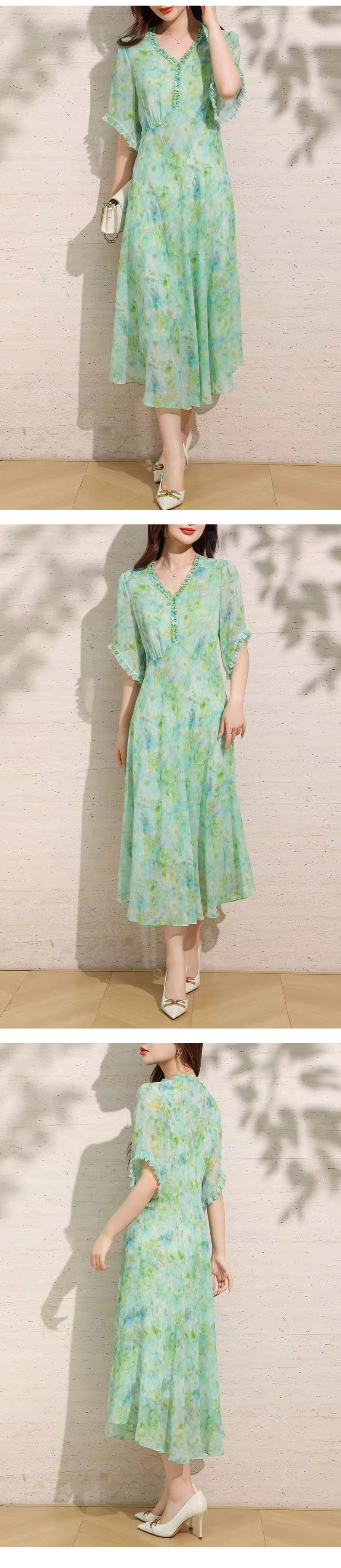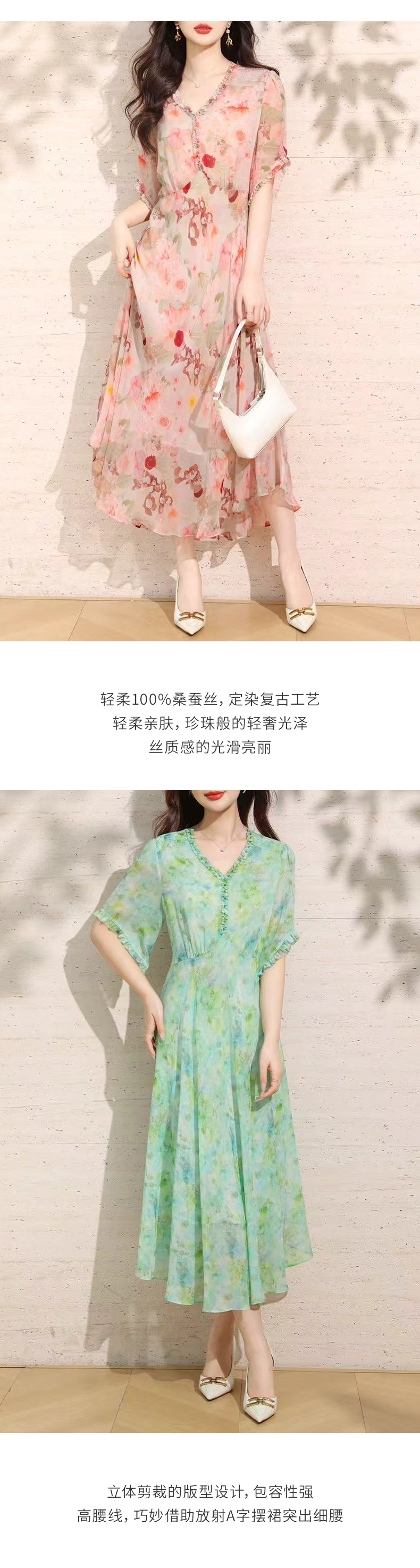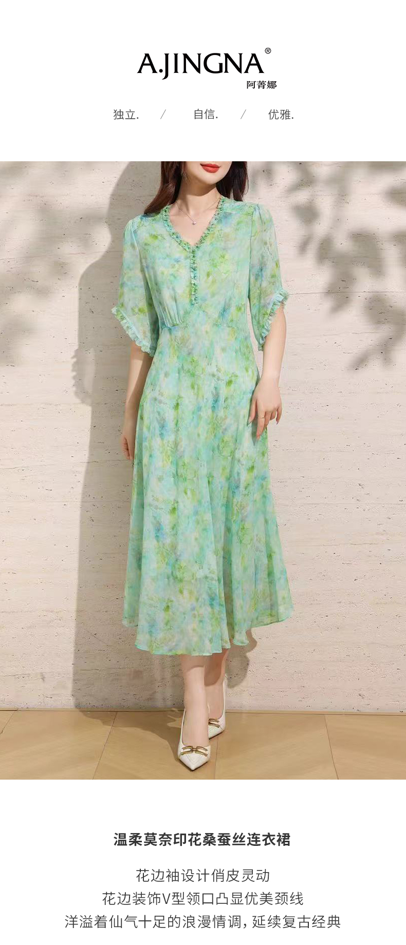 【俏皮灵动】阿菁娜温柔莫奈印花桑蚕丝连衣裙F30X212091
