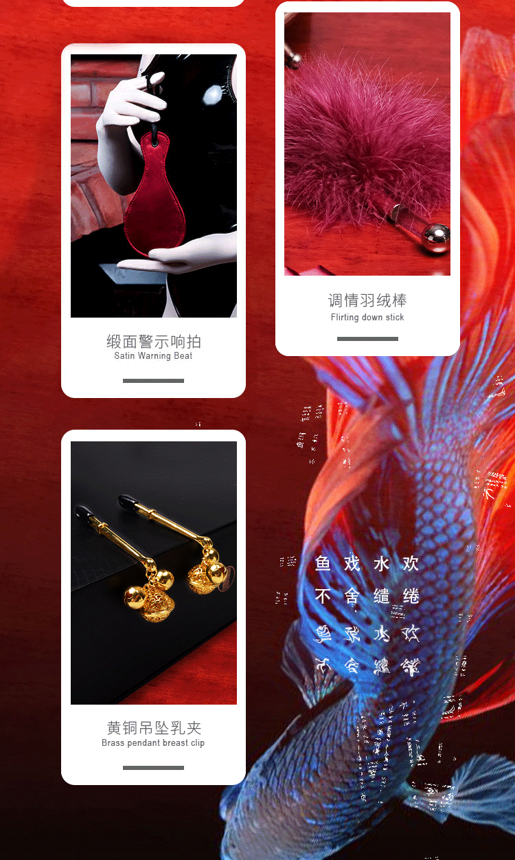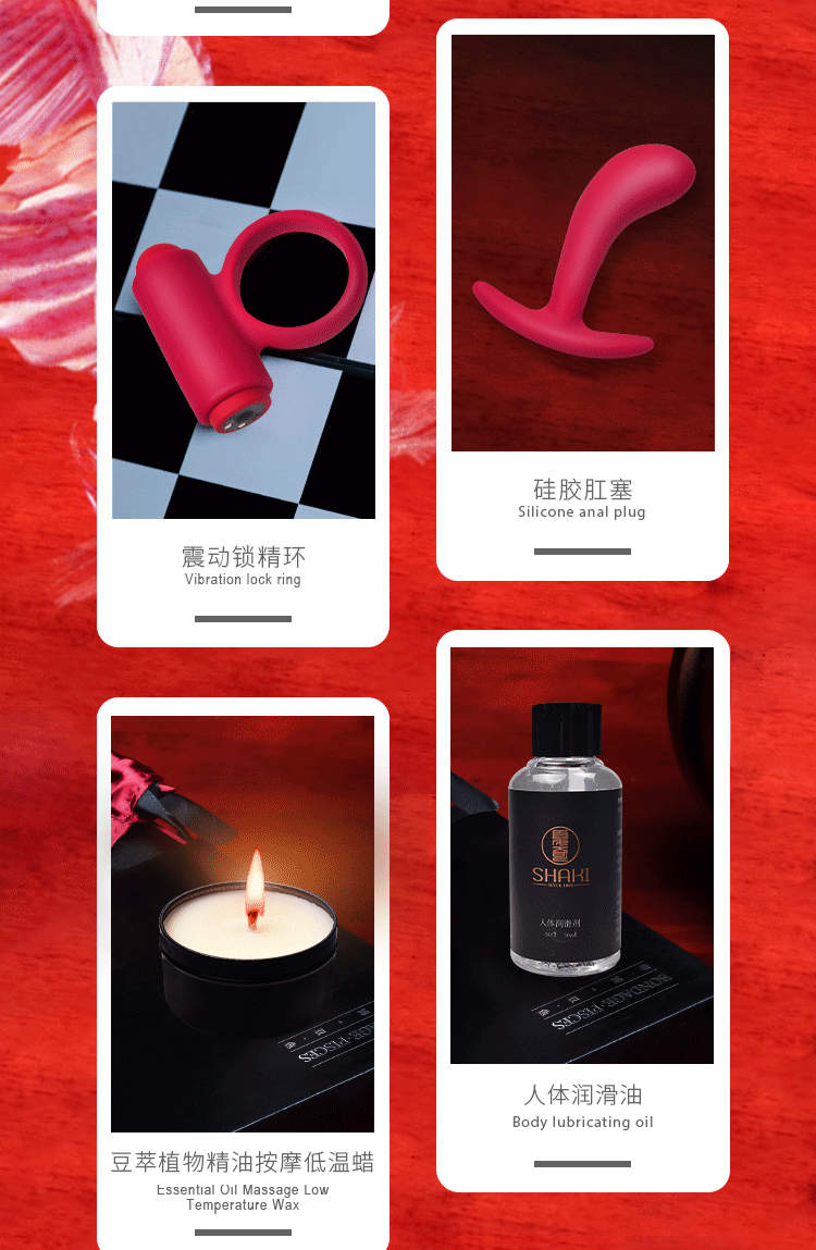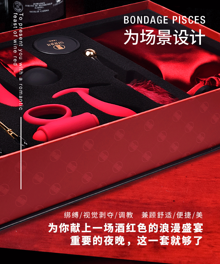 【套装升级版!!】SHAKI 夏奇 绑缚·双鱼S调教套装(乳夹+锁精环+震动棒+捆绑带+低温蜡烛+调情棒+口塞+响拍+眼罩+润滑+肛塞)