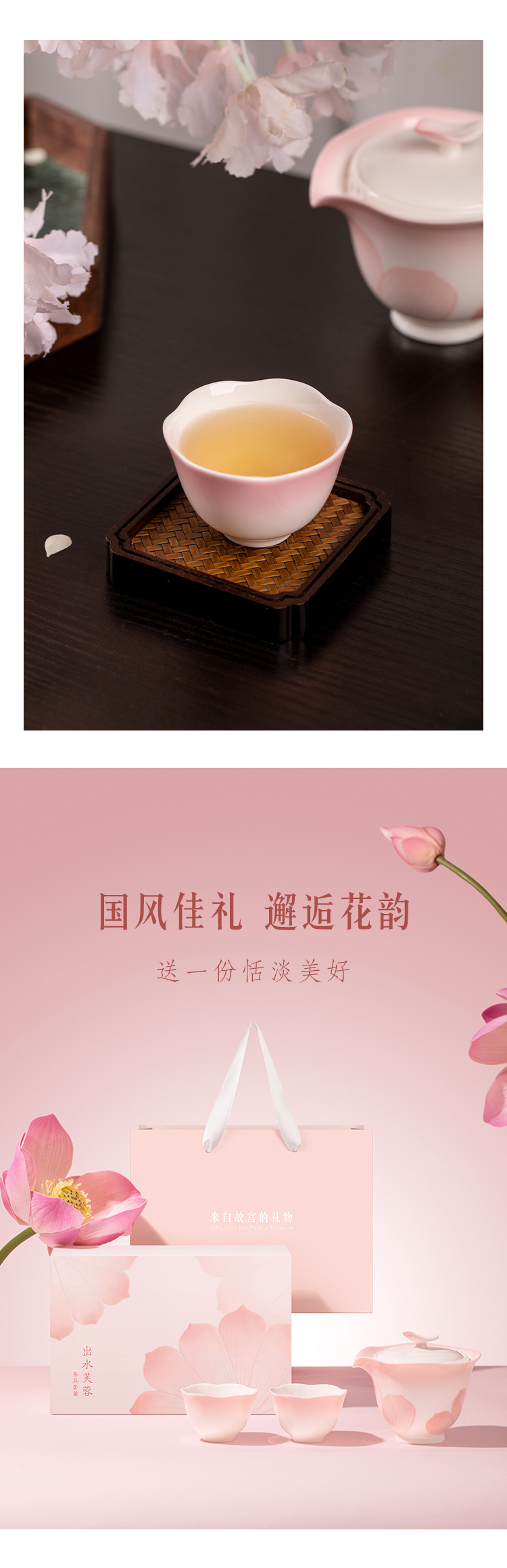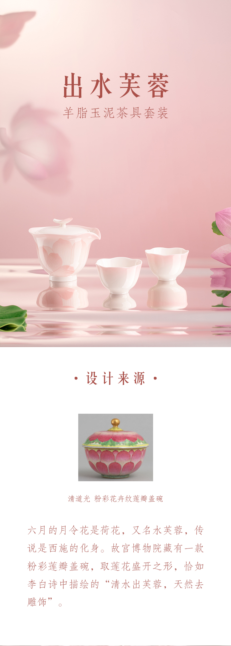 【故宫茶具】出水芙蓉羊脂玉泥茶具茶杯套装博物馆文创新婚生日礼物
