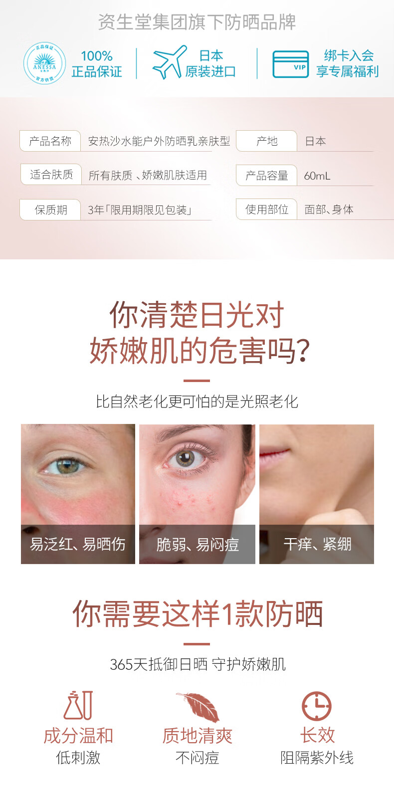 安热沙倍润防晒乳亲肤型60ml/瓶