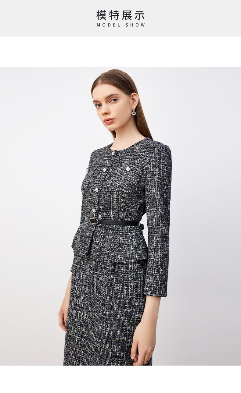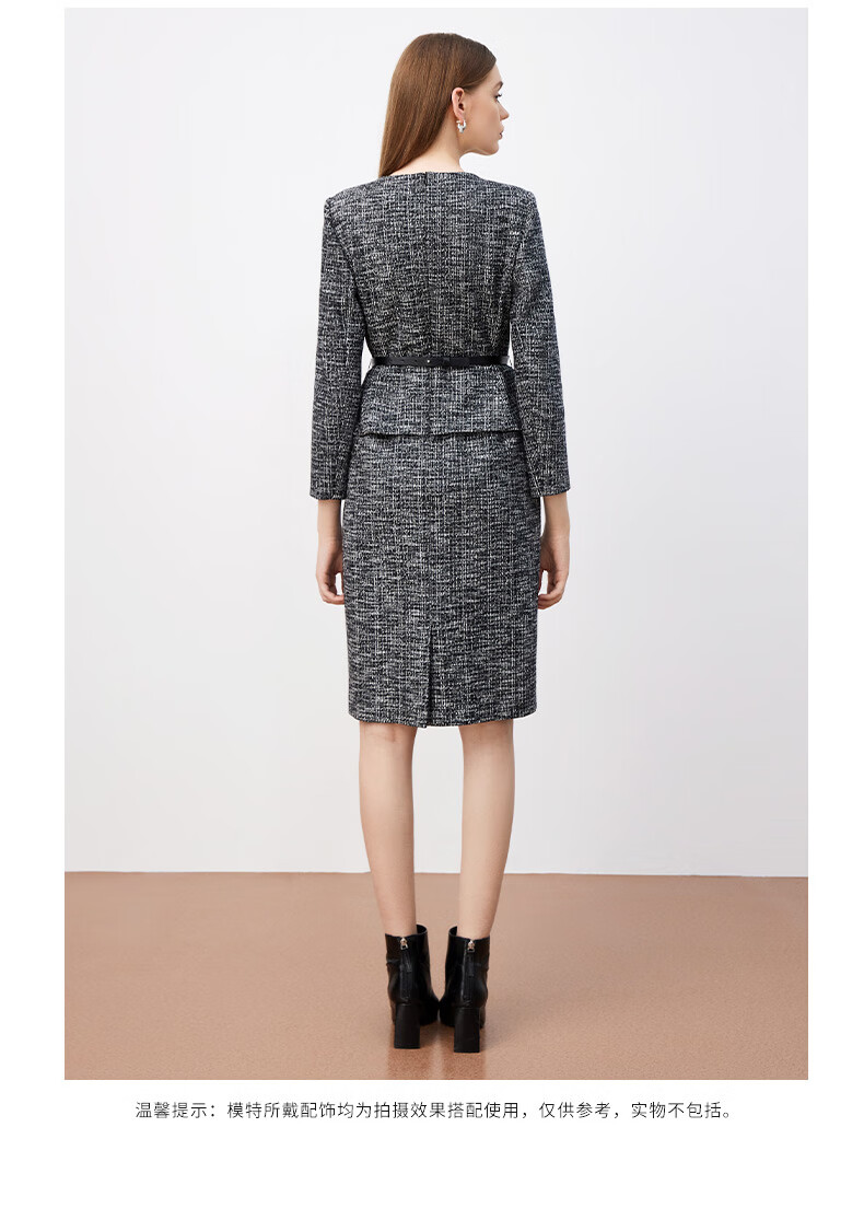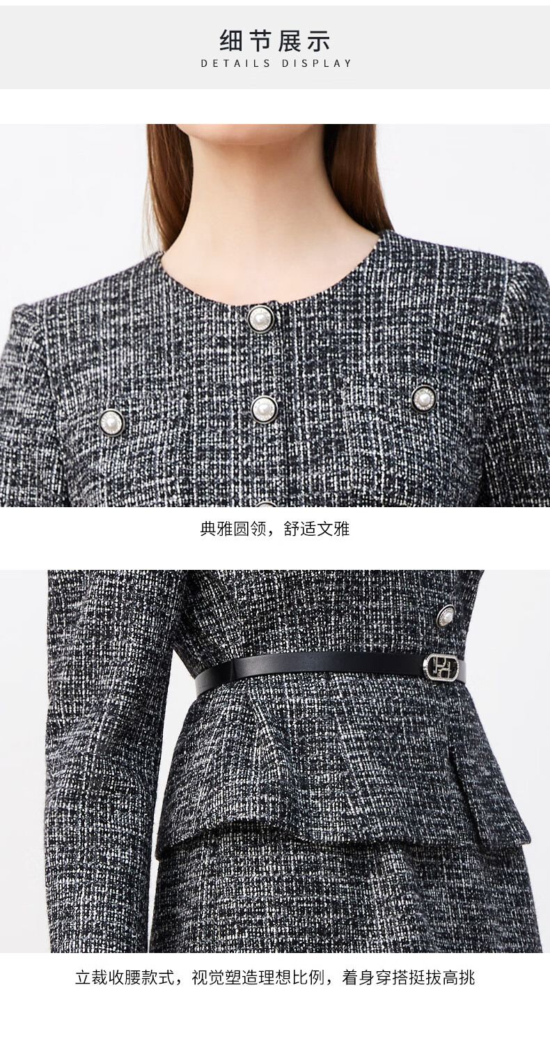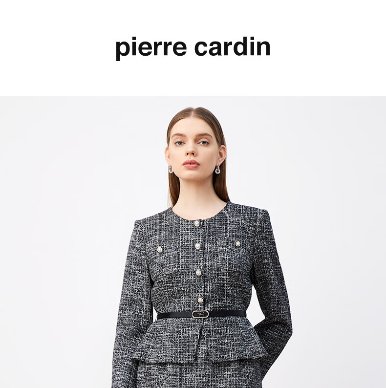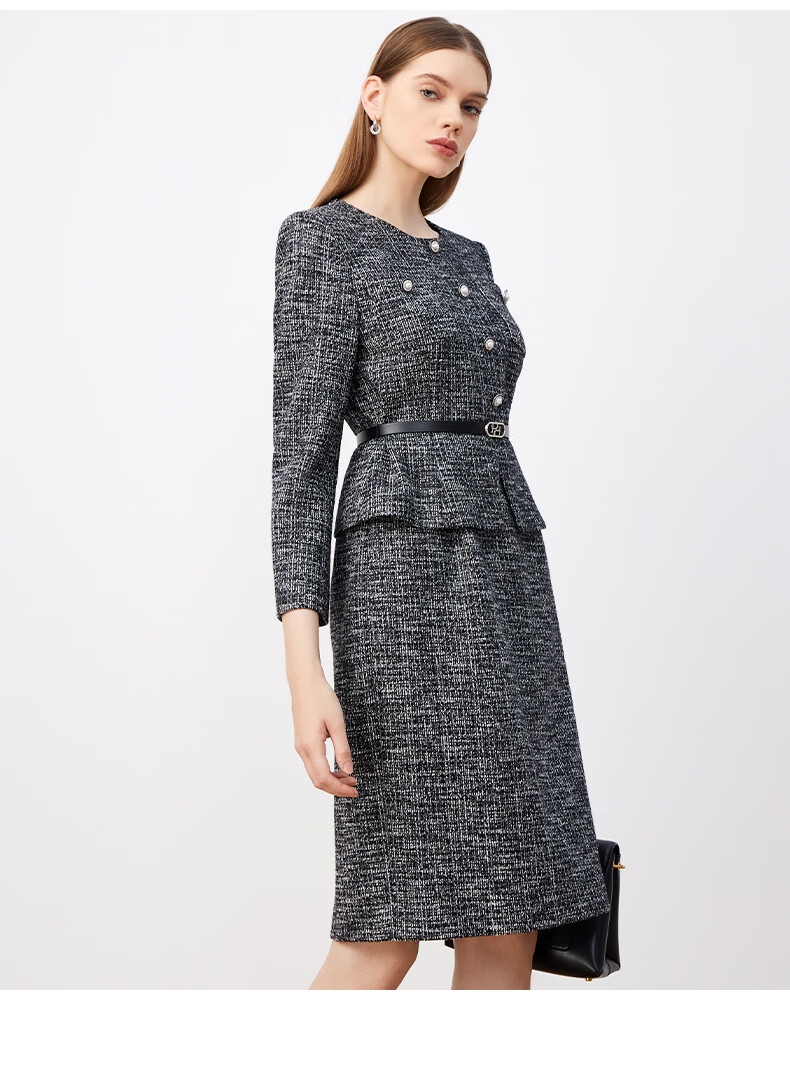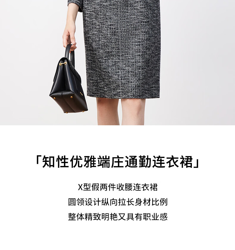 皮尔卡丹女装连衣裙法式香风千鸟格通勤修身连衣裙P3426E3945B3