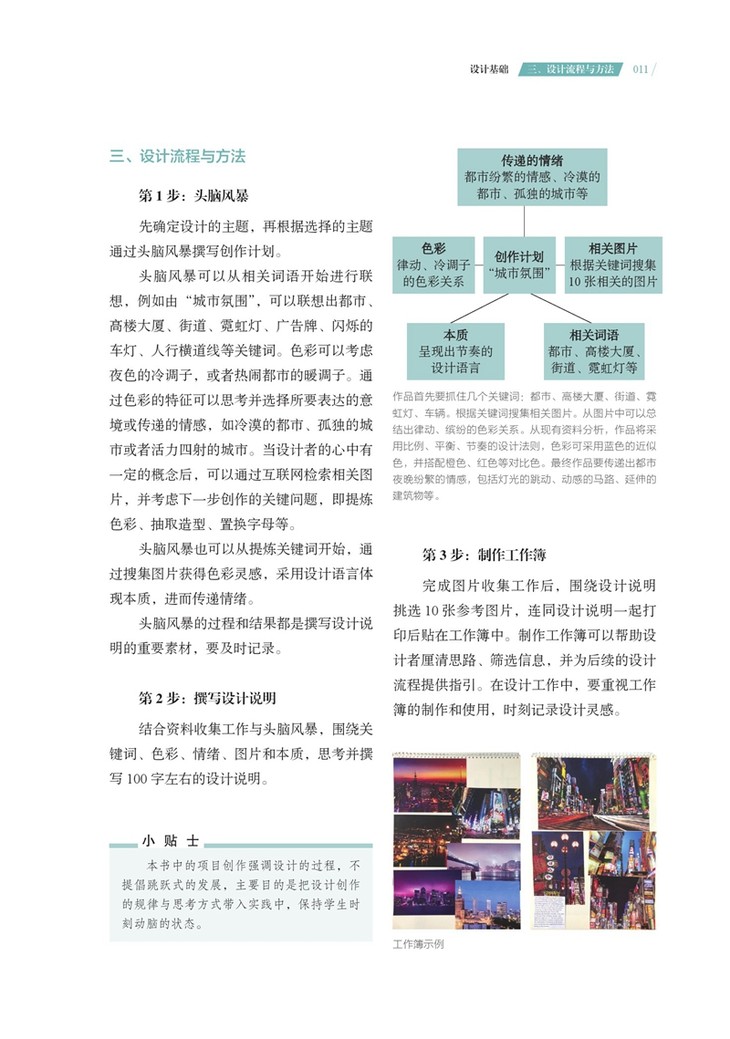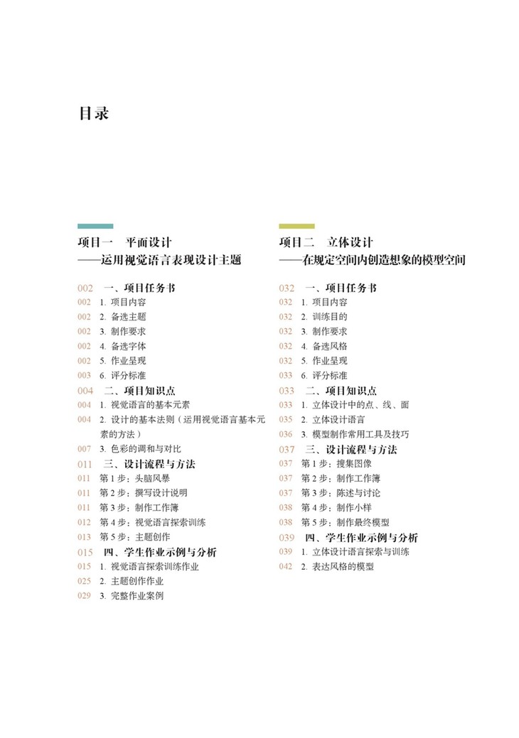 书中项目内容重在训练思维,略去了烦冗深奥的理论,便于初学者上手,项目的编排也非常适合大中专院校的设计教学课时设置,本书适用于应用型艺术设计专业学生的学习,也适合艺术教育学生使用,以了解基本的设计,同时也为也为有志于赴国外学习设计的学生提供参考。