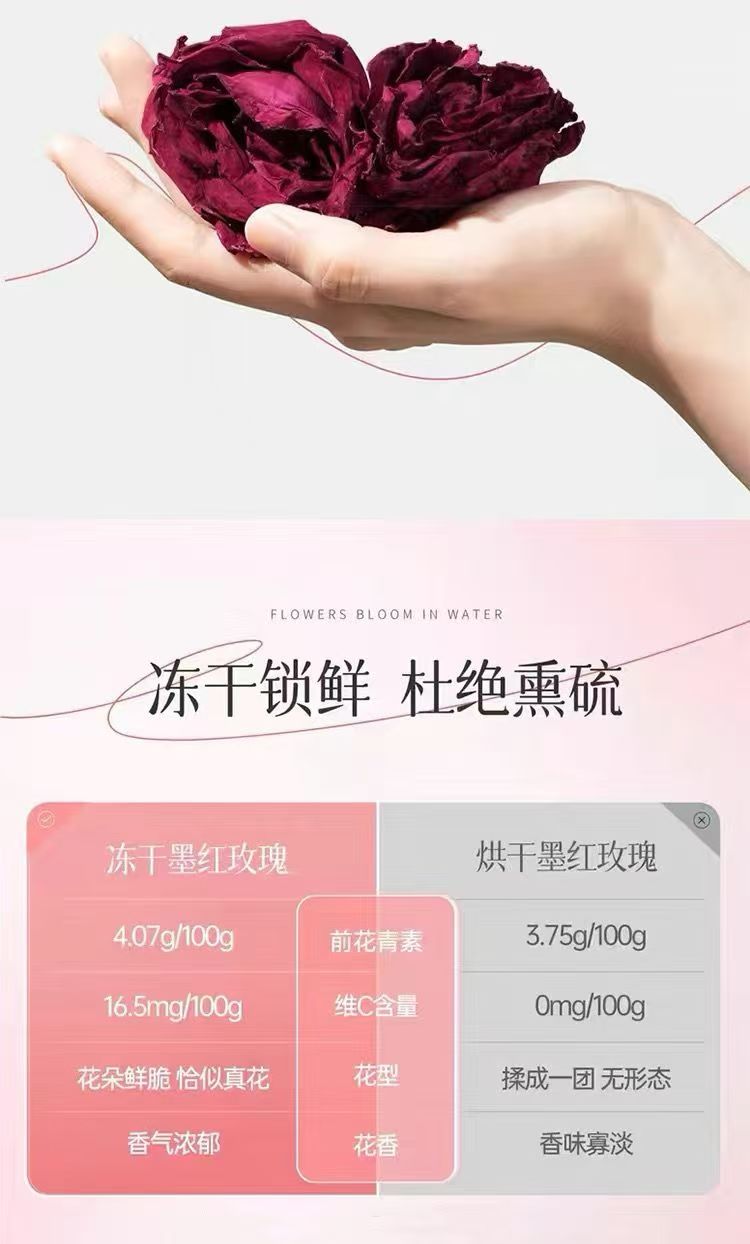 冻干墨红玫瑰花苞云南玫瑰食用玫瑰花茶重瓣无熏硫大朵头茬花花茶