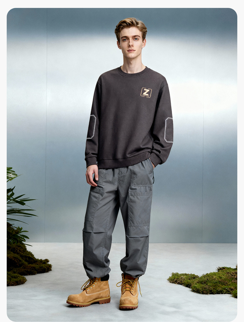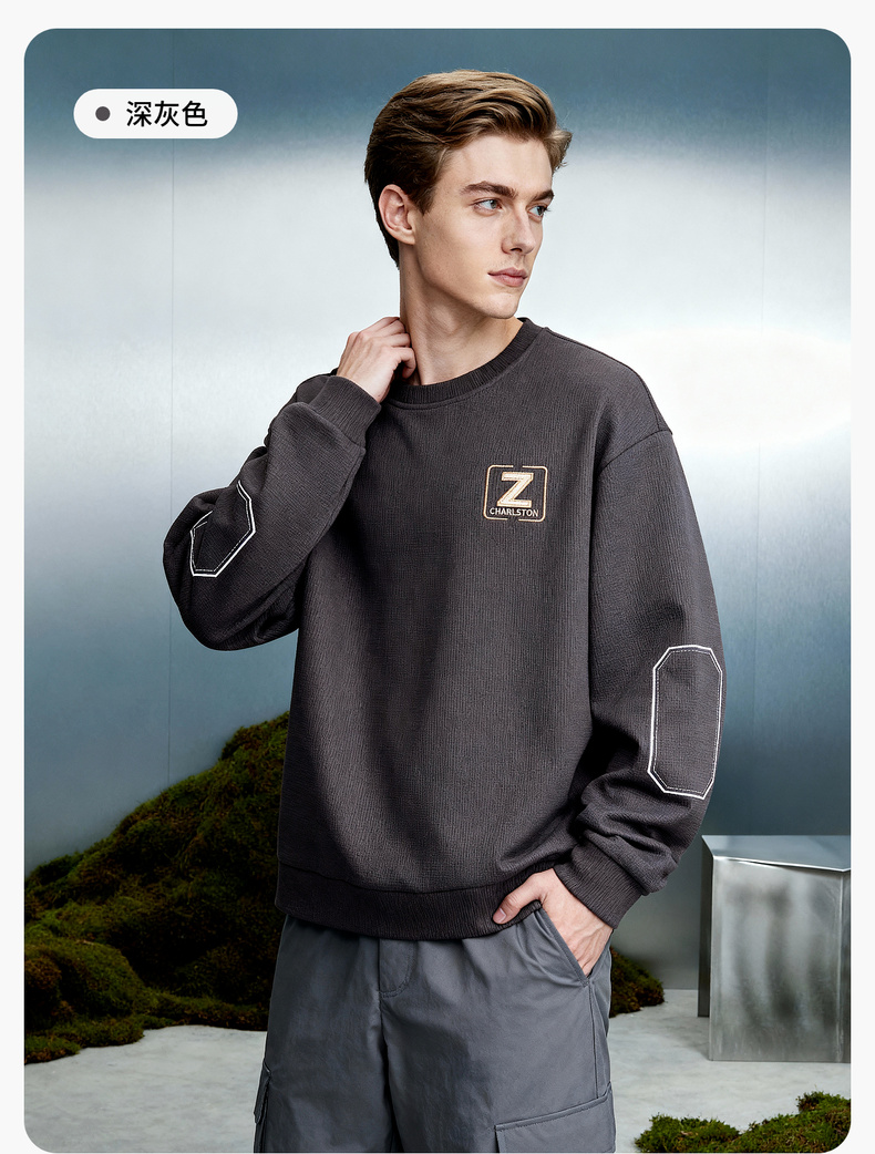 圣得西男士潮流印花圆领卫衣2025秋季新款时尚百搭上衣