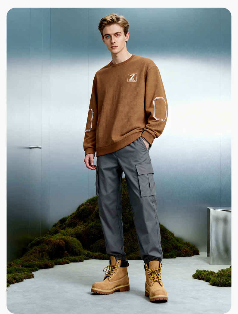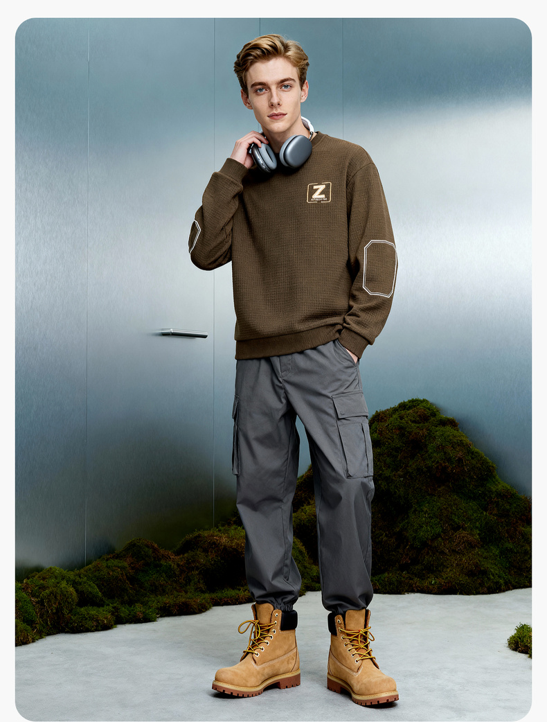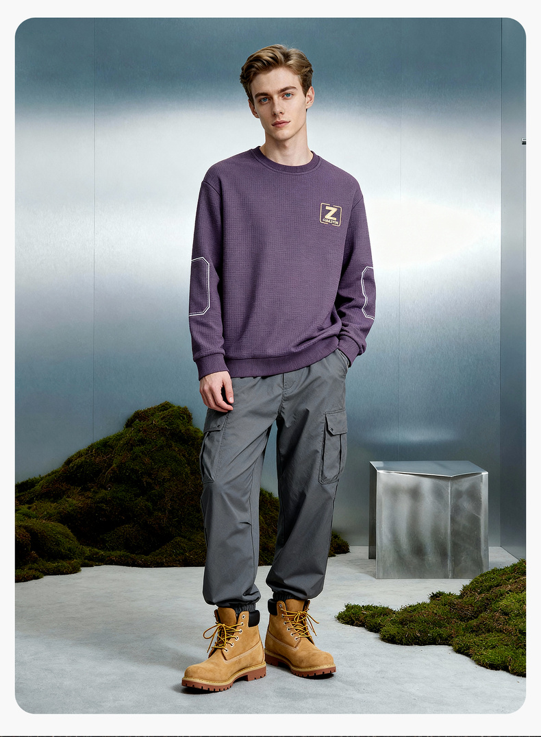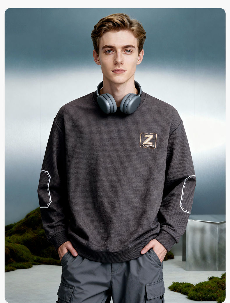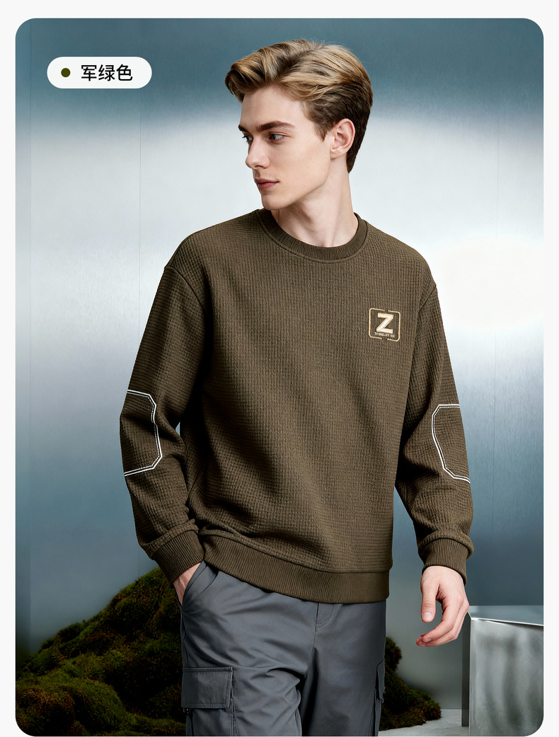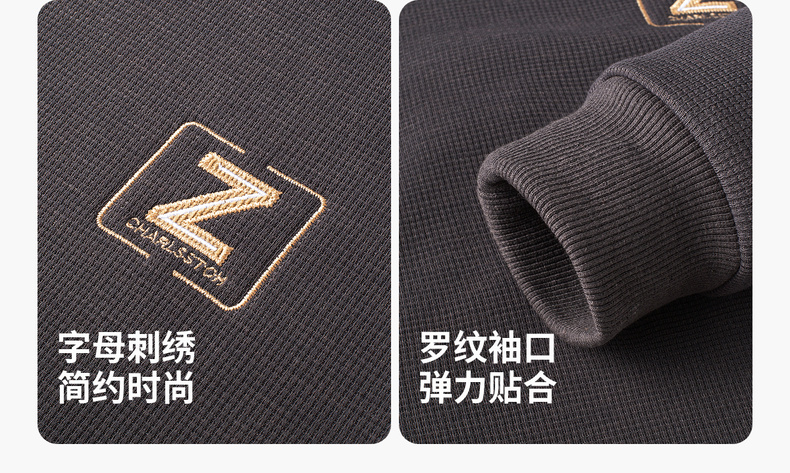 华夫格加绒保暖圆领卫衣