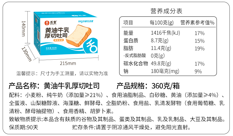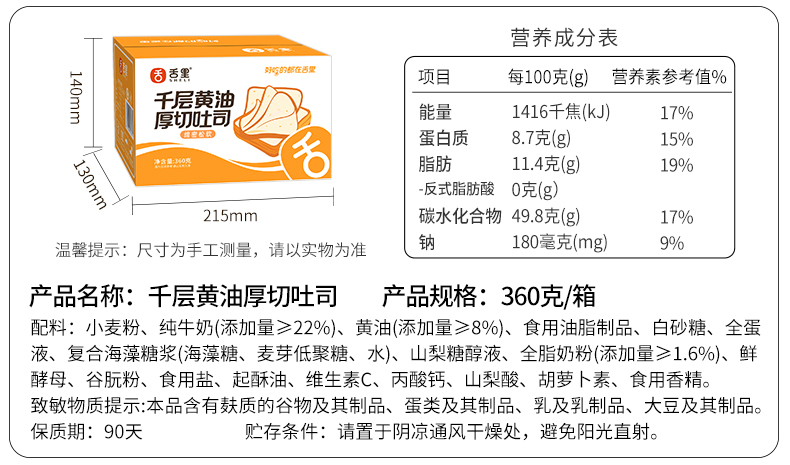 【牛乳厚切吐司】舌里黄油牛乳厚切吐司1箱*360g 独立包装 以产品克重为准