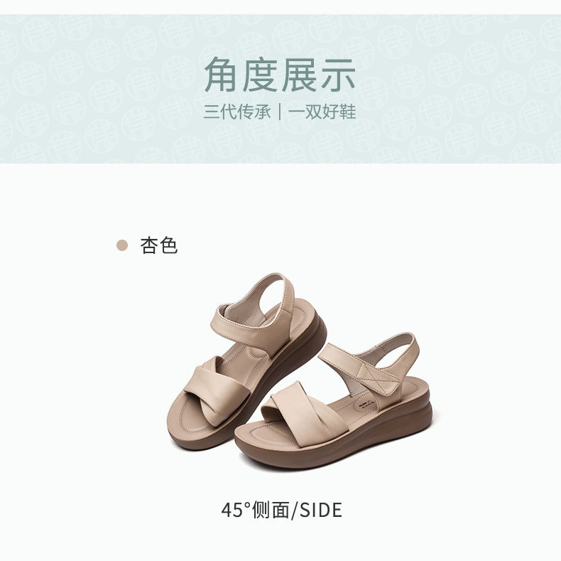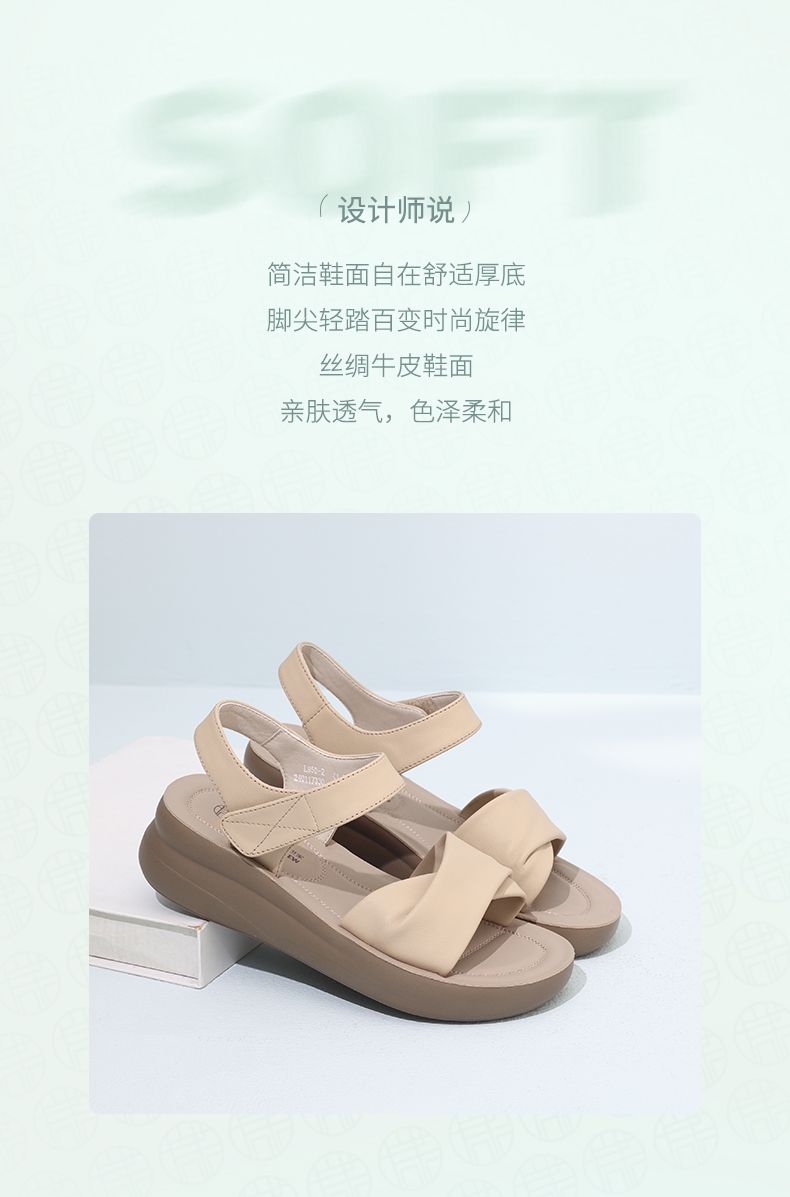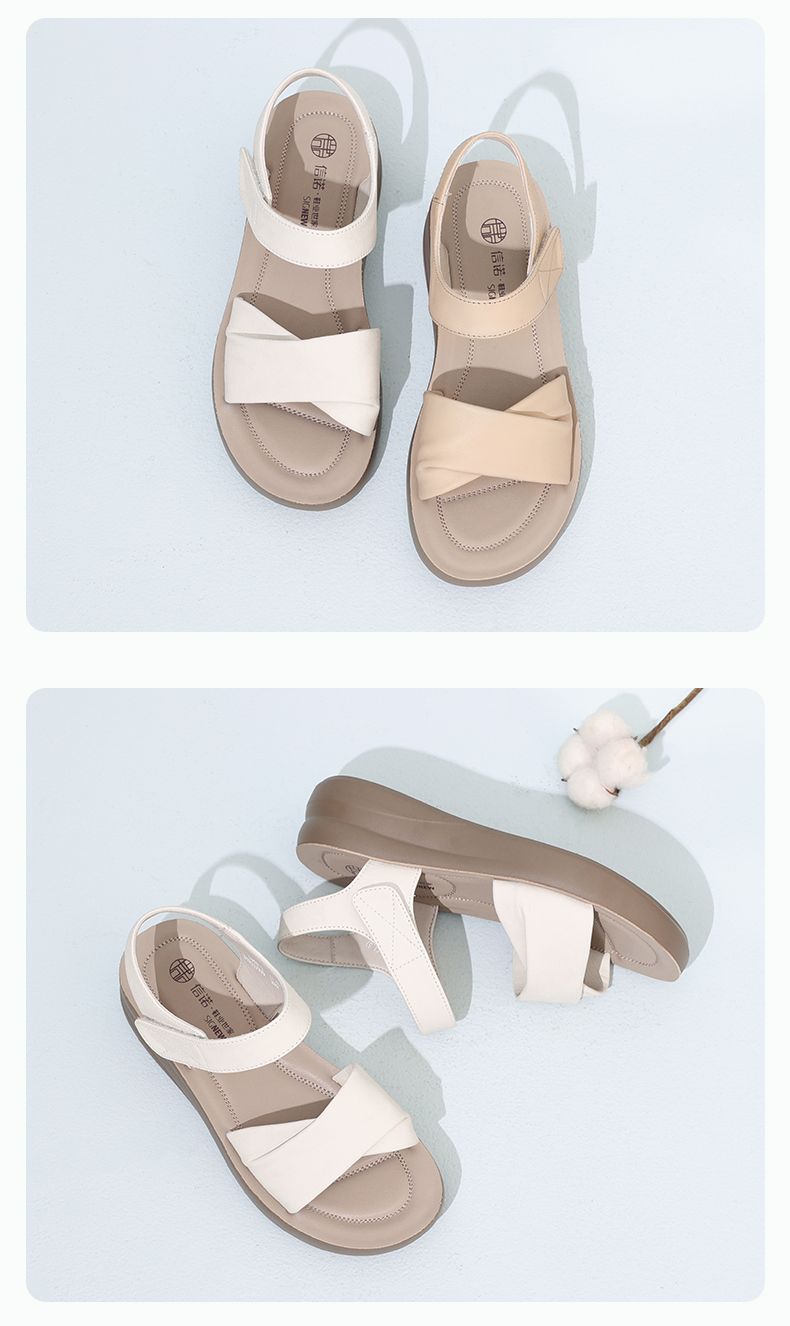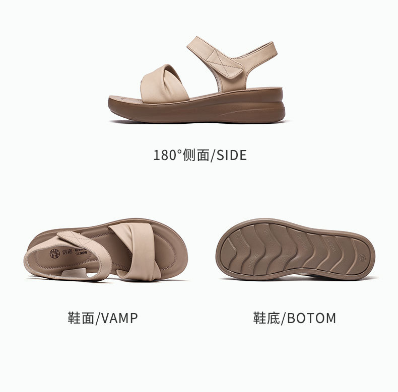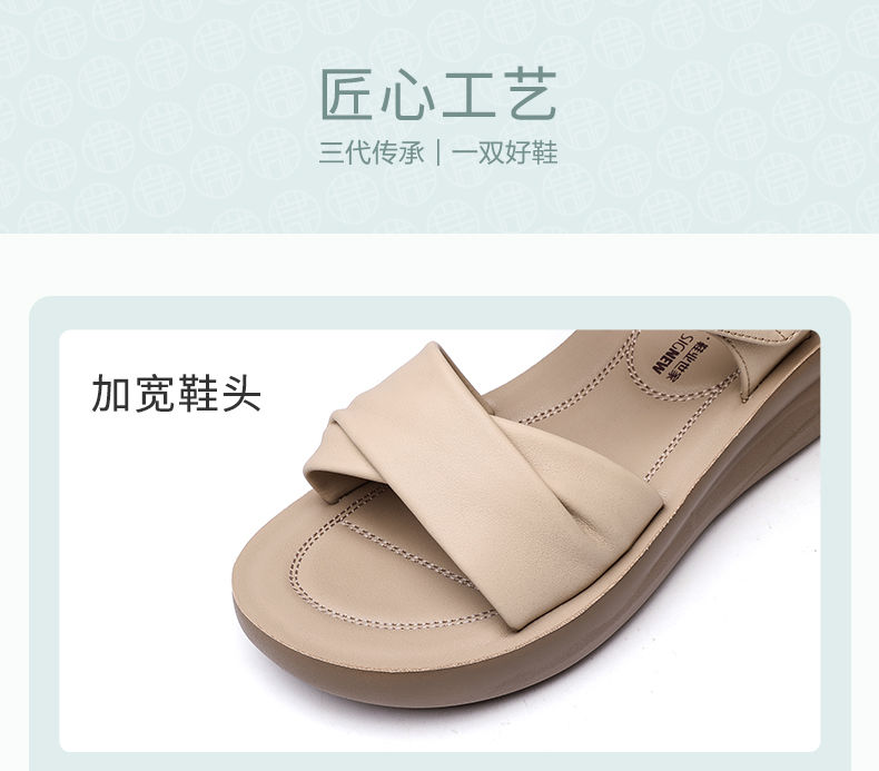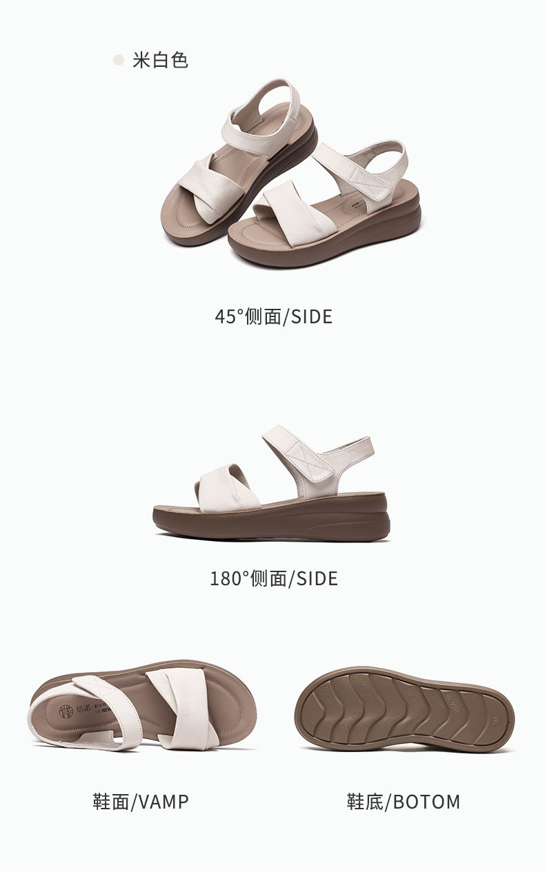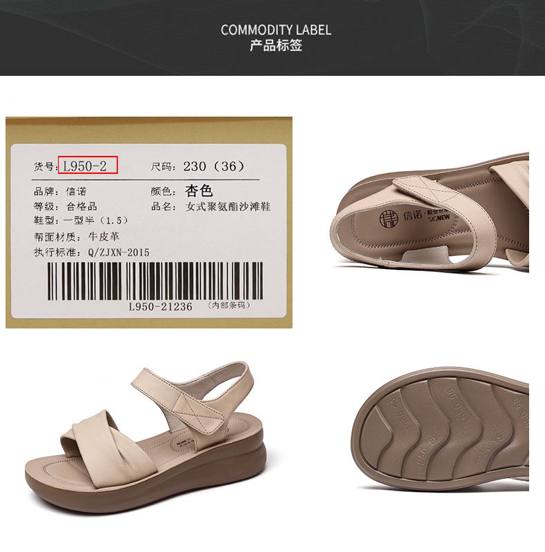 信诺 厚底轻便女鞋 2024新款夏季真皮舒适沙滩凉鞋外穿软底妈妈鞋L950-2