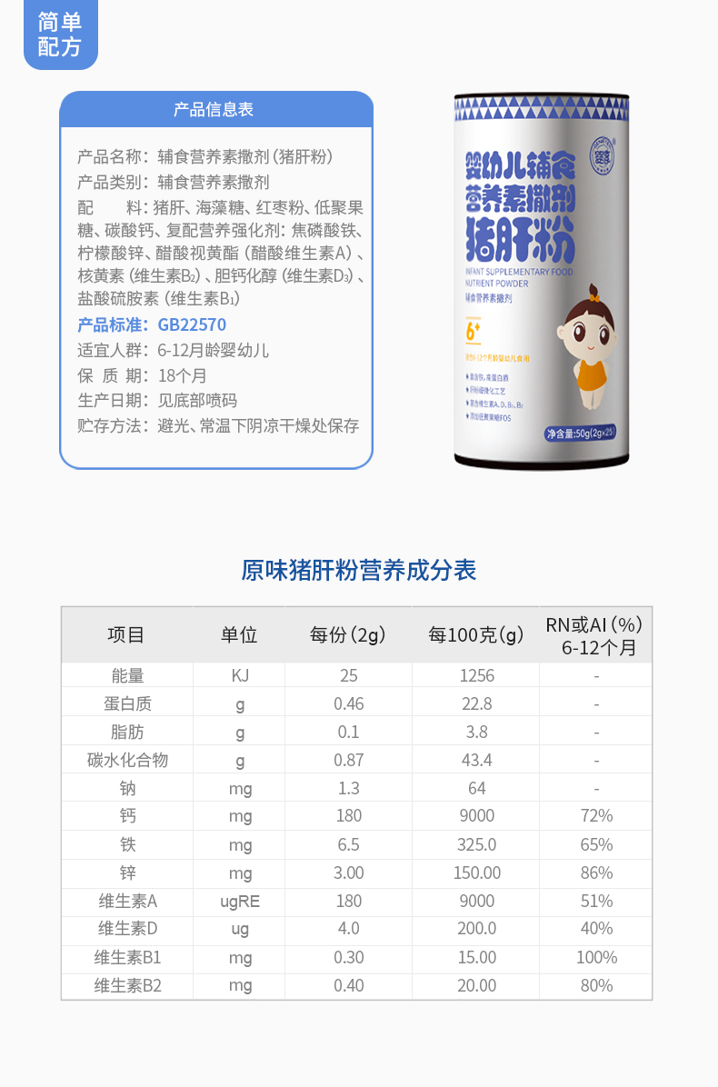 婴享婴儿猪肝粉补铁婴幼儿调味料营养零食宝宝辅食添加料拌饭调料 猪肝粉