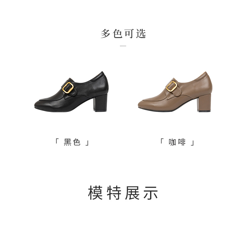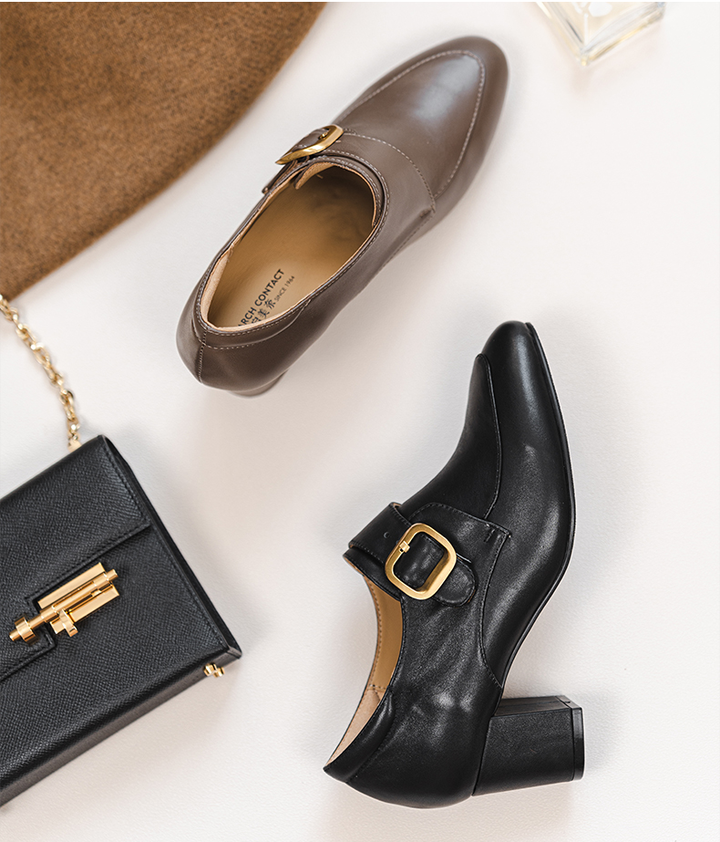 ARCHCONTACT安启美奈粗跟带扣英伦小皮鞋52842