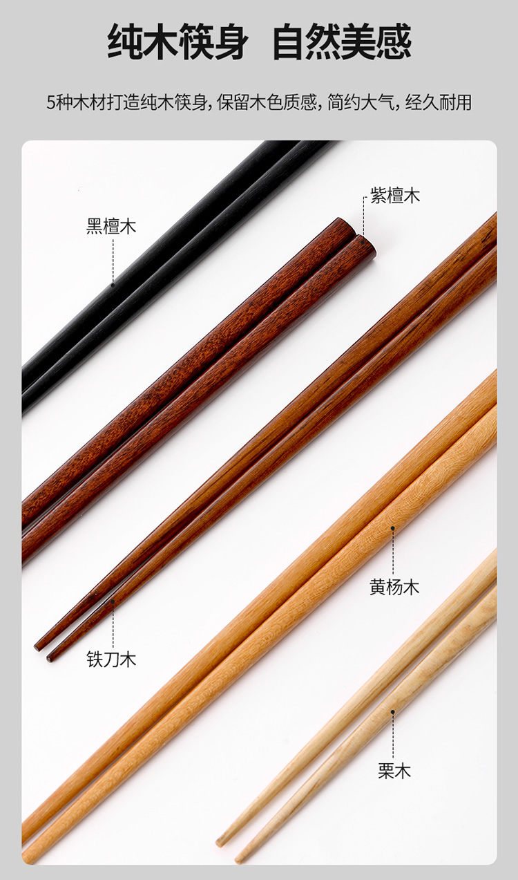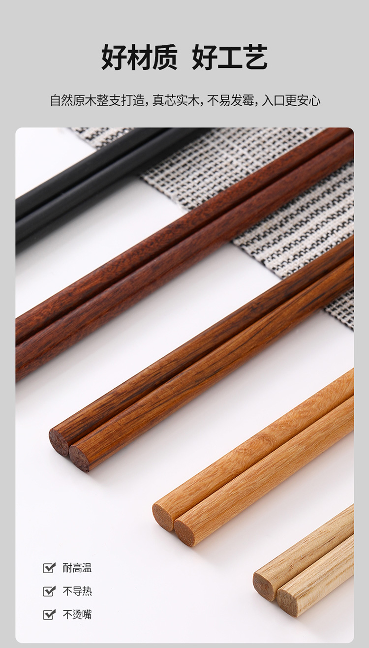 FaSoLa实木筷子高档家用无漆无蜡木质家庭公筷耐高温工具紫檀木筷
