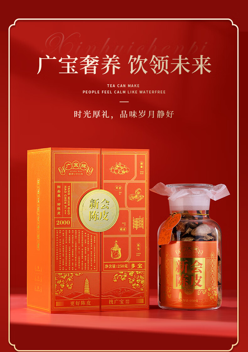 广宝陈皮 多宝 2000 东甲大红皮 干仓生晒 广东新会陈皮礼盒