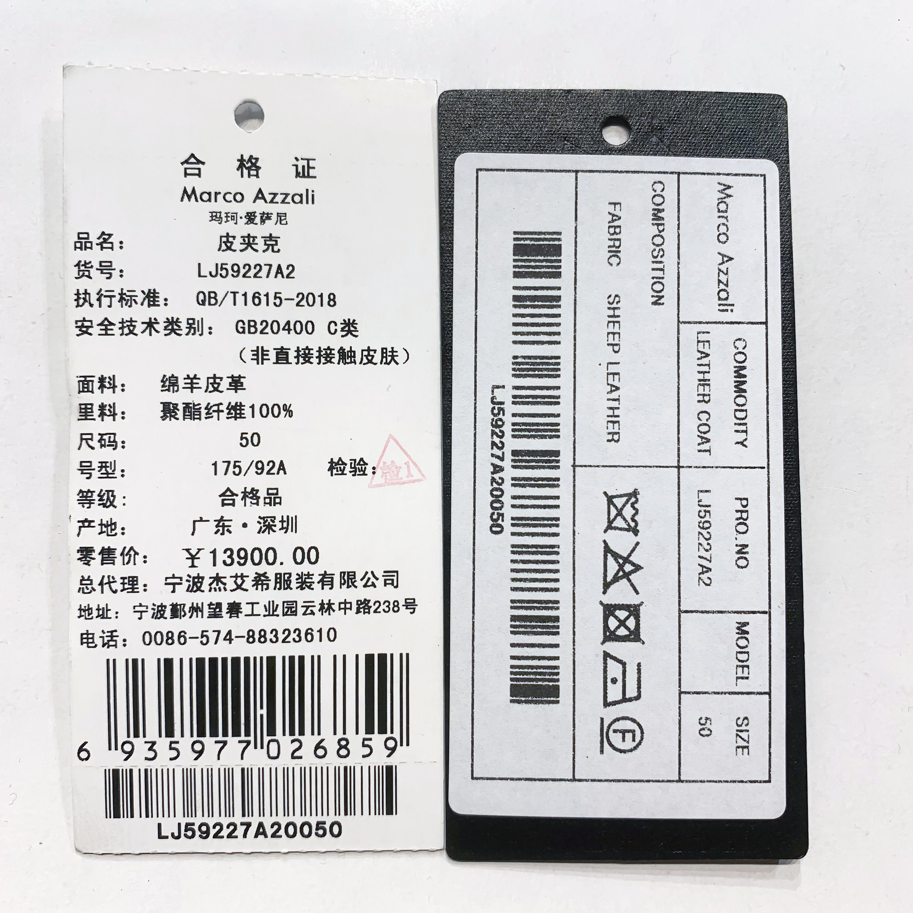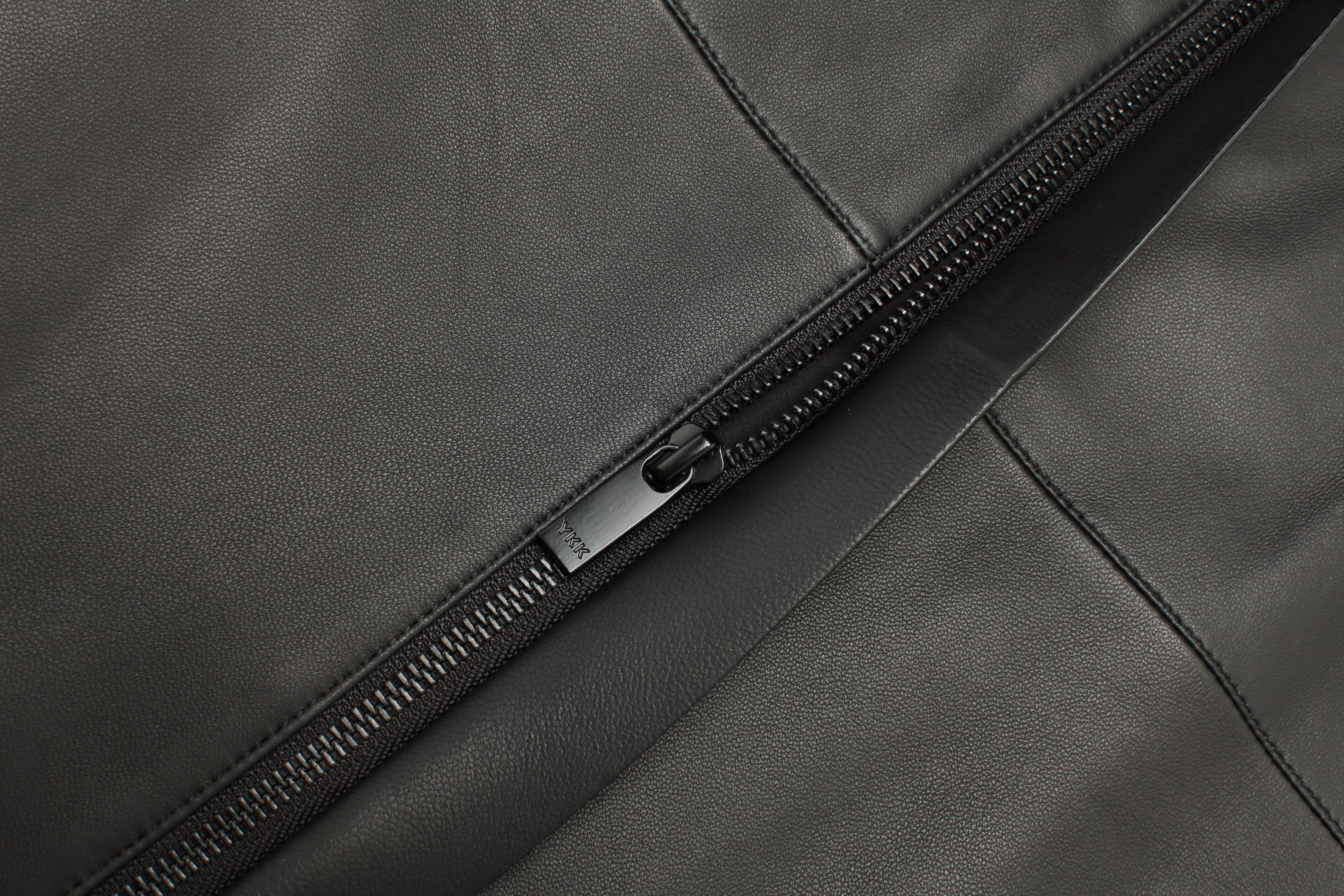Marco Azzali拉链款中长款皮衣 LJ59227A2