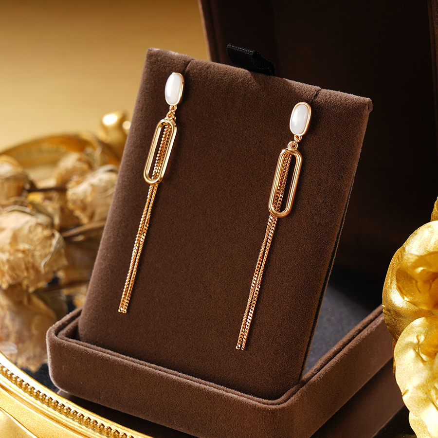 【寓意】:精致的流苏线条耳饰,波光流转,优雅灵动,巧妙修饰脸部线条的同时,衬托出光彩照人的好气色。
