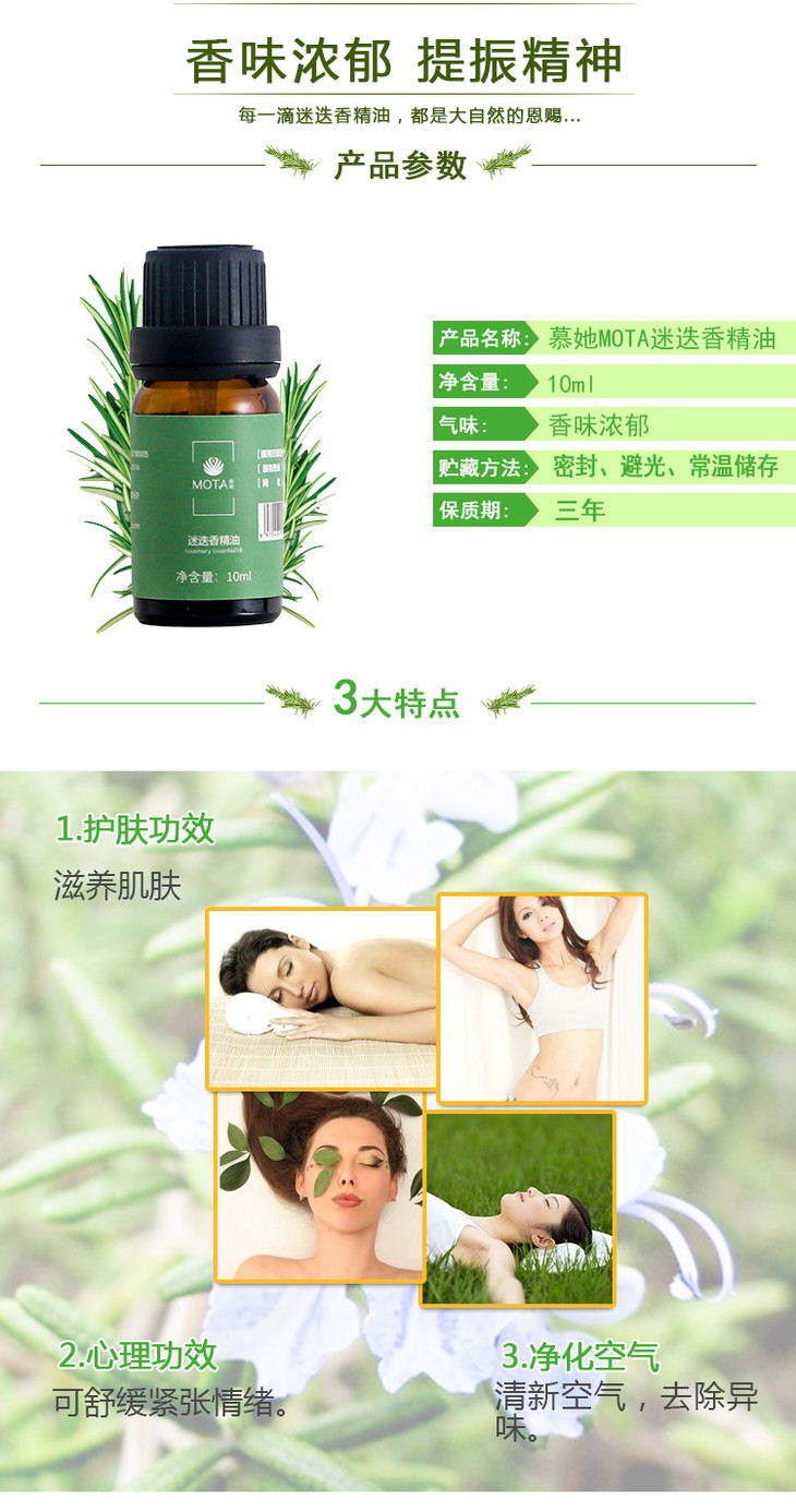 MOTA慕她 迷迭香精油单方精油 10ml/瓶*1