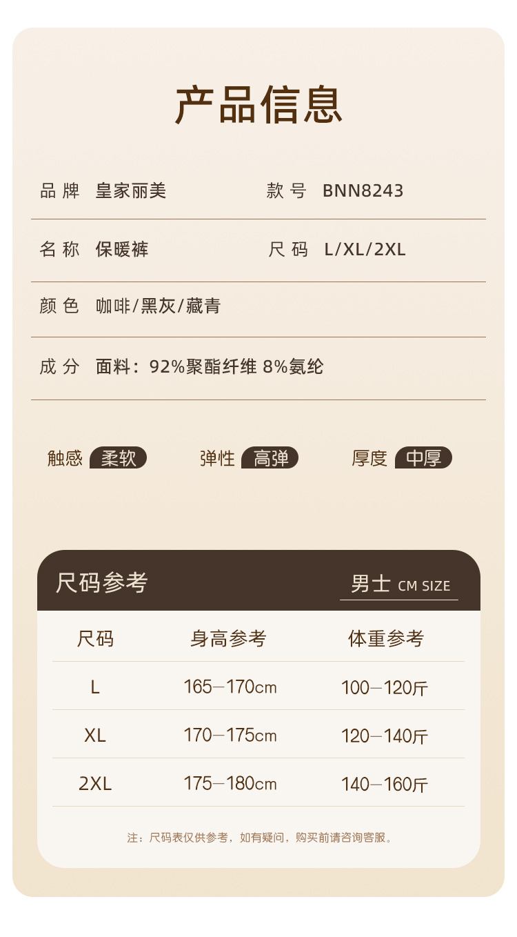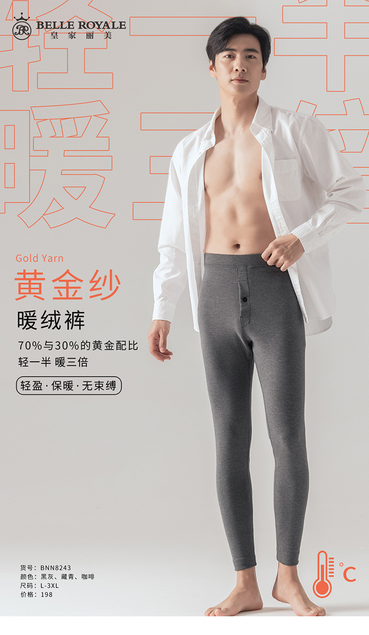 秋冬男款保暖裤轻暖黄金纱线蓄热暖绒裤秋裤BNN8243