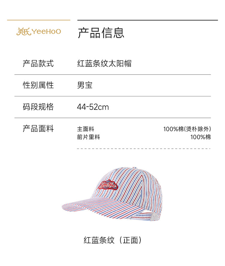 英氏宝宝帽子婴儿太阳帽男宝条纹遮阳鸭舌帽春夏新款YRPEJ1S038A
