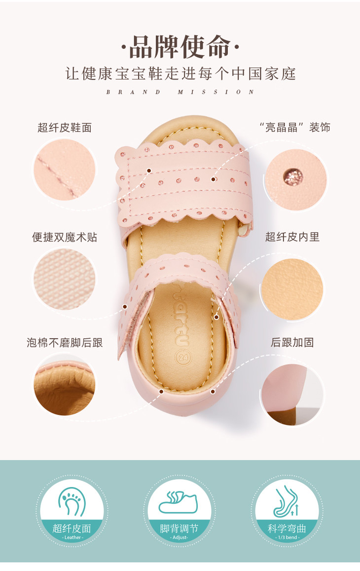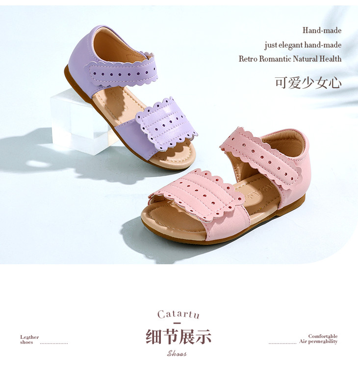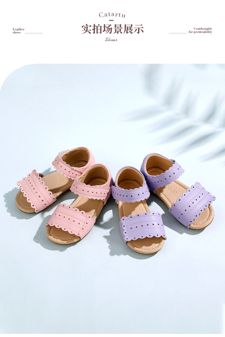 卡特兔凉鞋女童新款魔术贴单鞋软底儿童鞋时尚皮凉鞋女夏季公主鞋