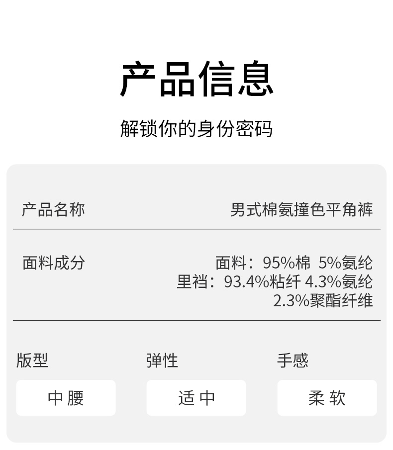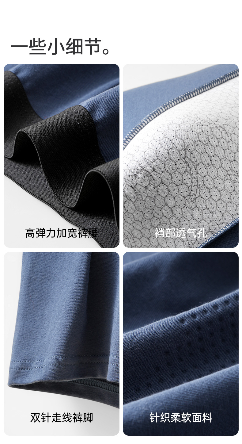 爱帝男士内裤5条装棉氨撞色平角裤