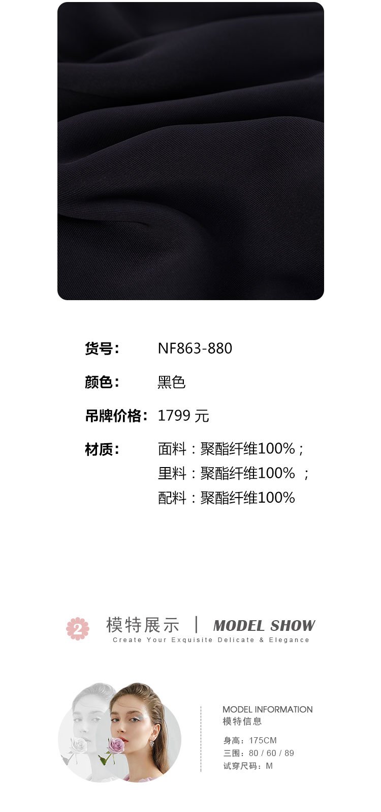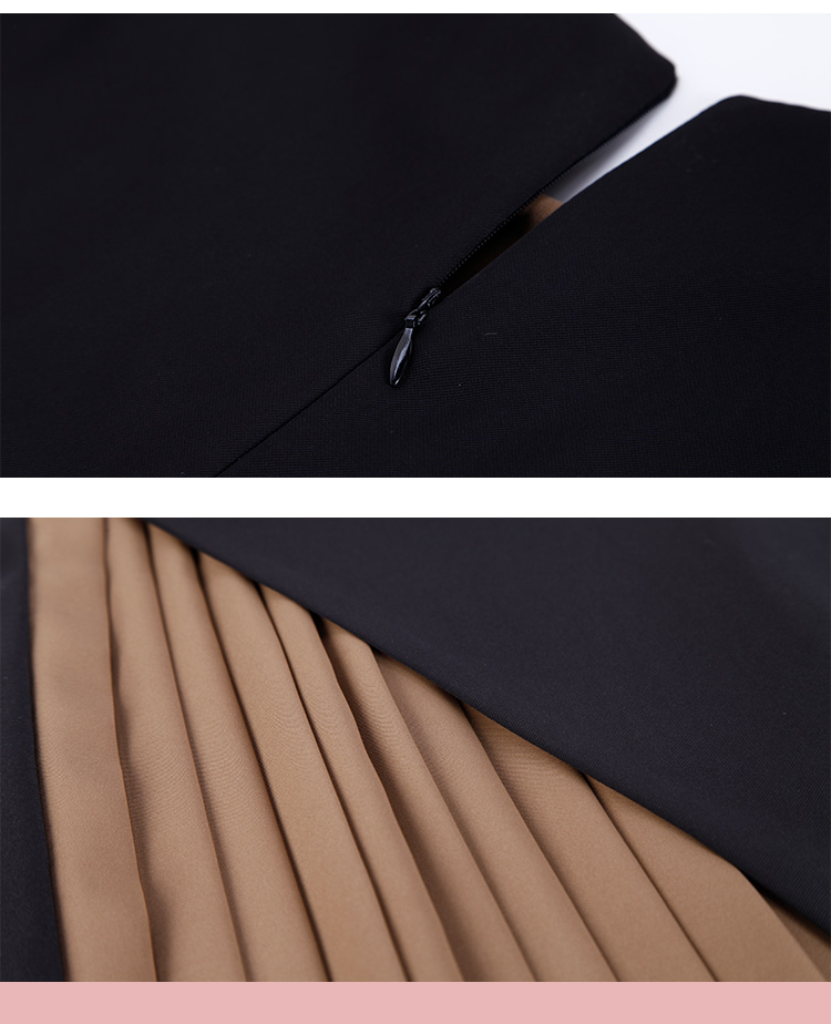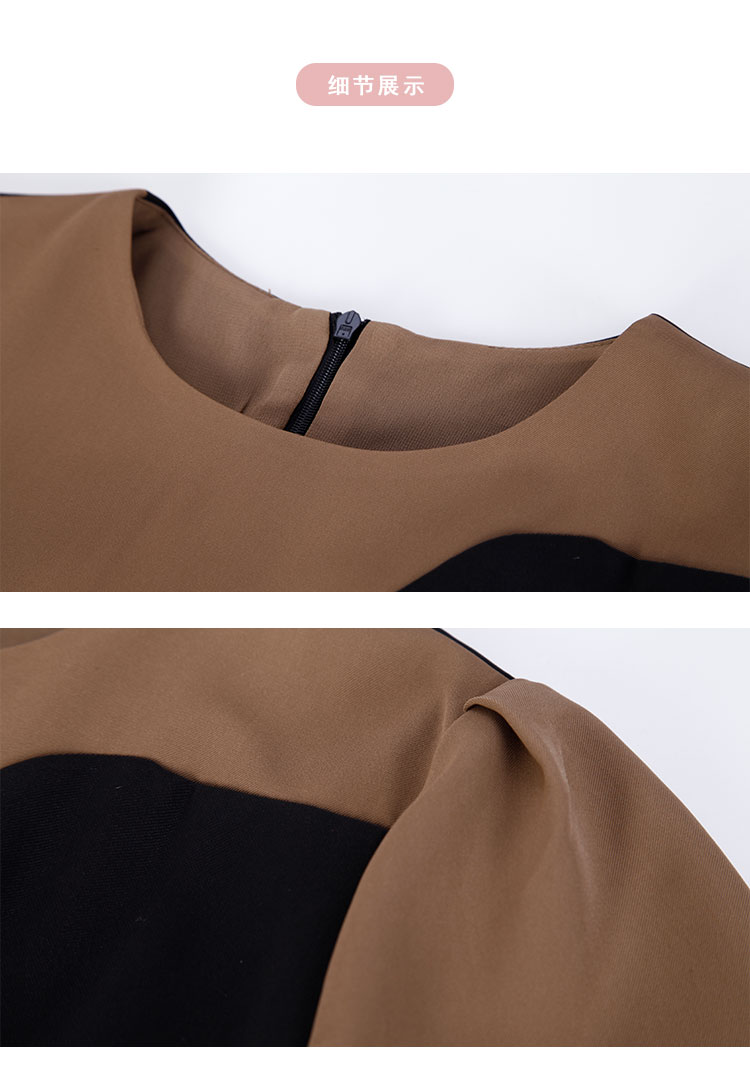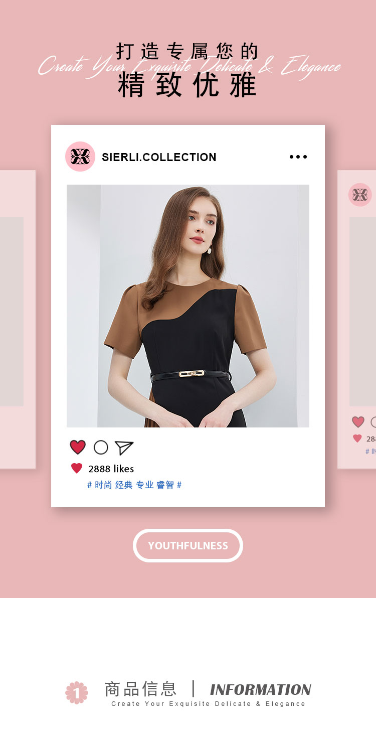NF863斯尔丽瑟俪2023夏季新款圆领高腰短袖设计感不规则撞色连衣裙