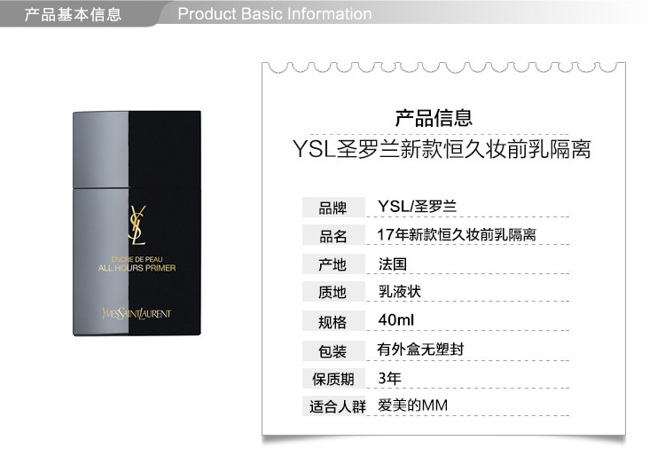 【欧洲季】Yves saint Laurent/圣罗兰 恒久无暇超时妆前隔离乳40ML 新品