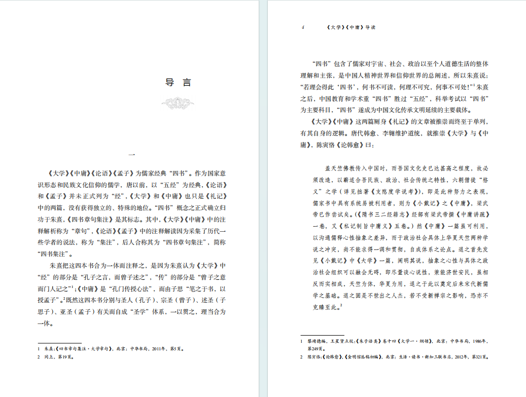 儒家“四书”,是古代中国人精神世界和信仰世界的总阐述。其中,《大学》申“大人之学”,讲修齐治平,是人格之学、成人成事之学;《中庸》重“君子之道”,讲君子时中,是心性之学、道德人性之学。《大学》言人格之大,《中庸》言人性之中。这两方面都是儒家思想中关于人的主体性不可或缺、不可戕残的基本内涵。本书作者鲍鹏山,力辨版本,阐译今文,条列注释,穷究原义,领读者深读二书、精读二书、品读二书,再焕古典光彩,重申圣言深义。