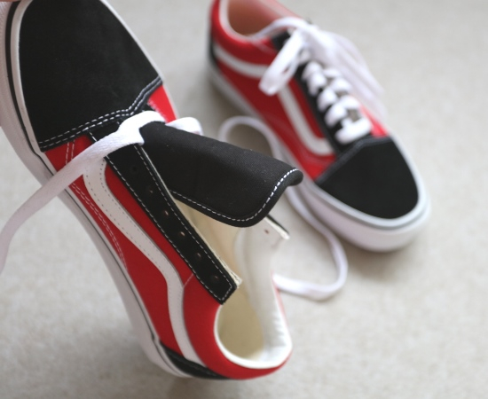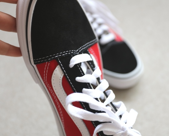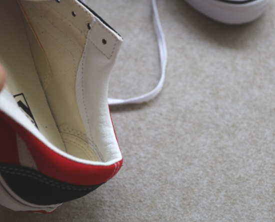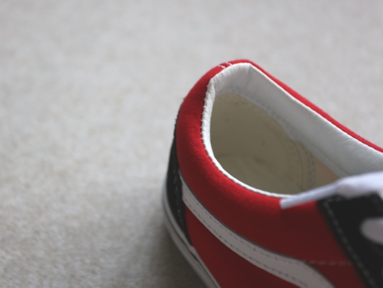 非常经典的0S鞋型 黑色位置是翻毛麂皮 红色位置和鞋舌头 是帆布