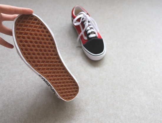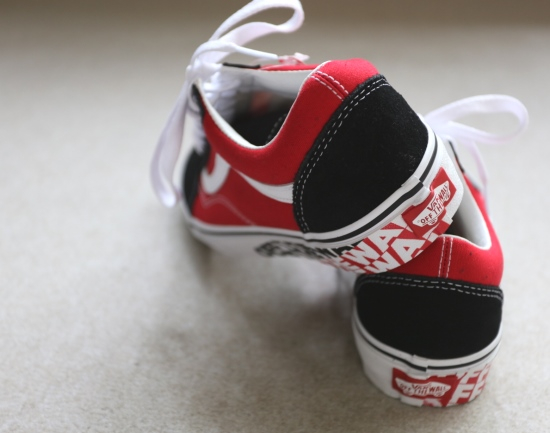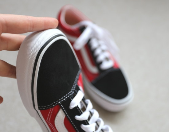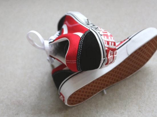 鞋体侧身标志性的波浪皮条 外侧鞋底 是黑白红色的印字