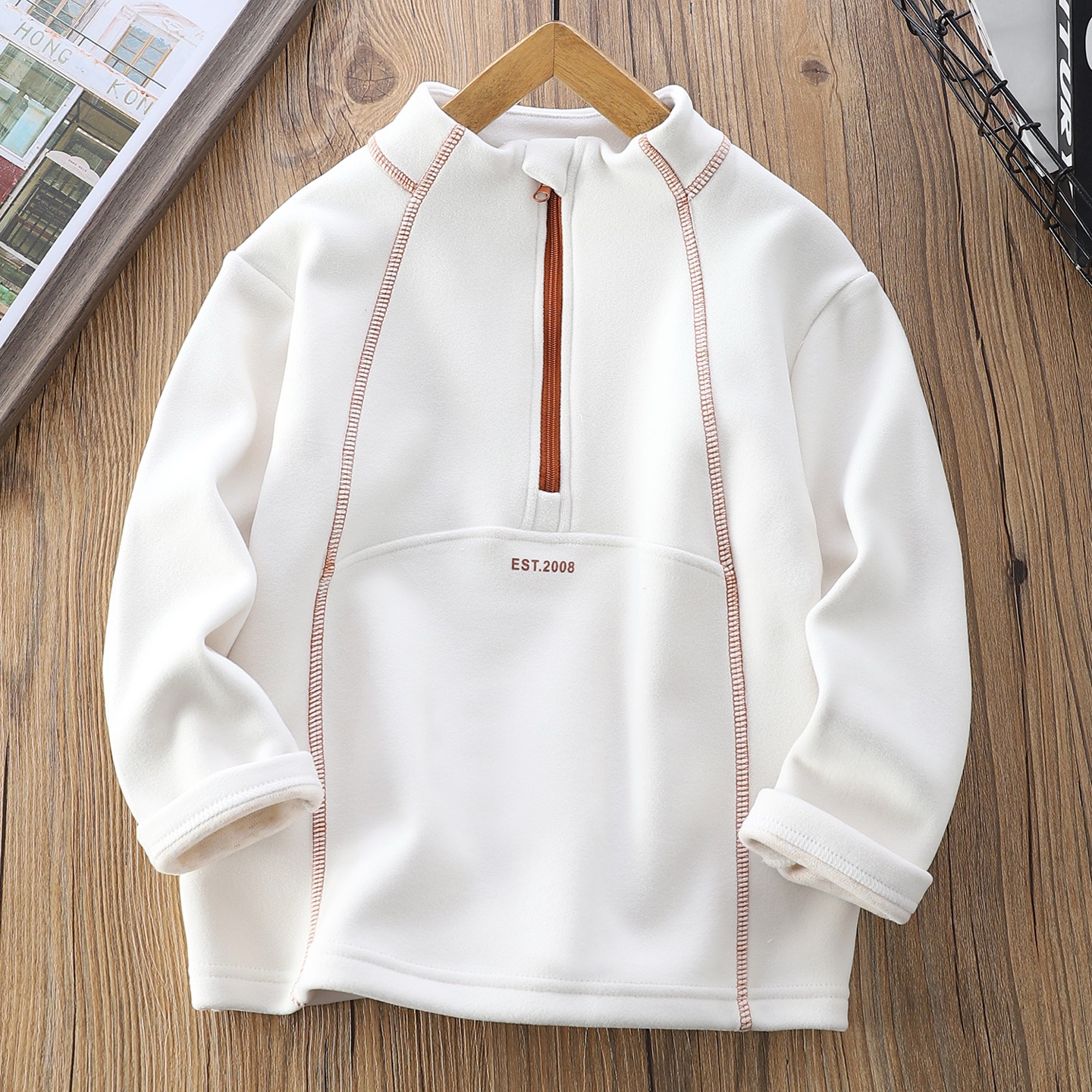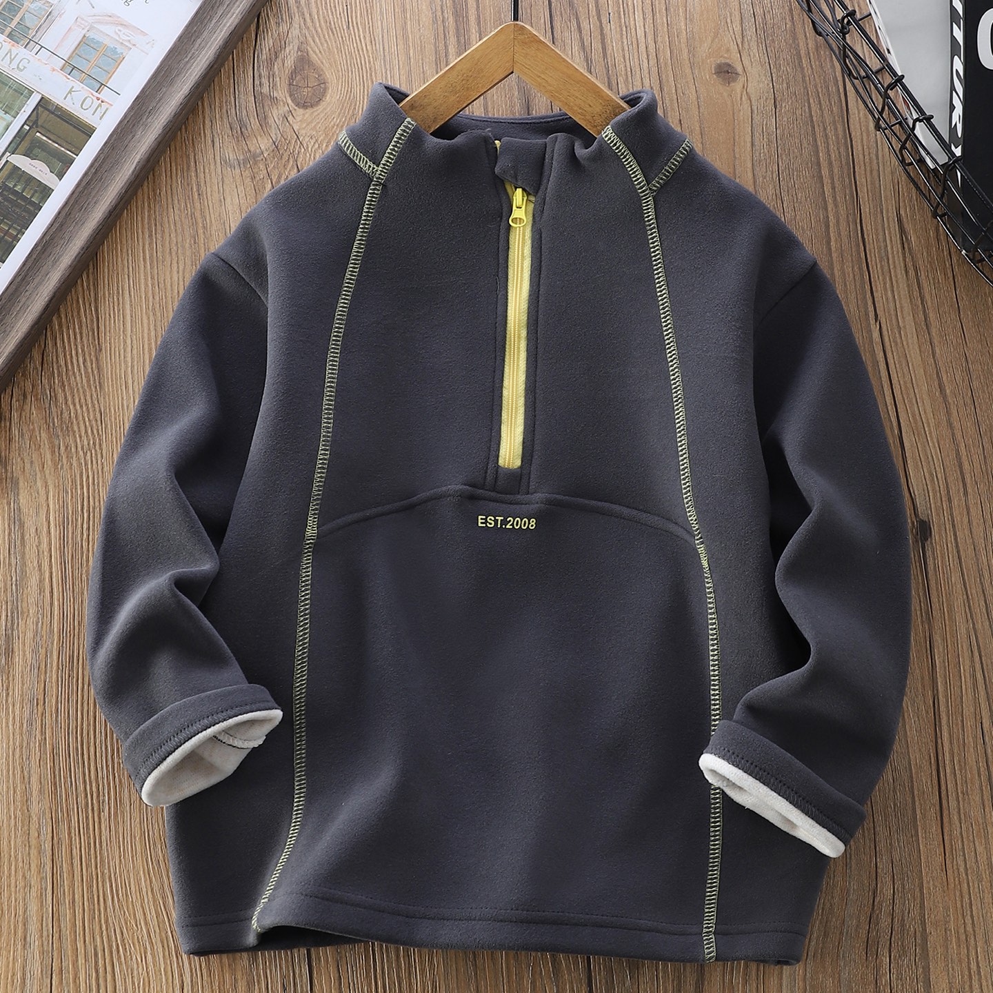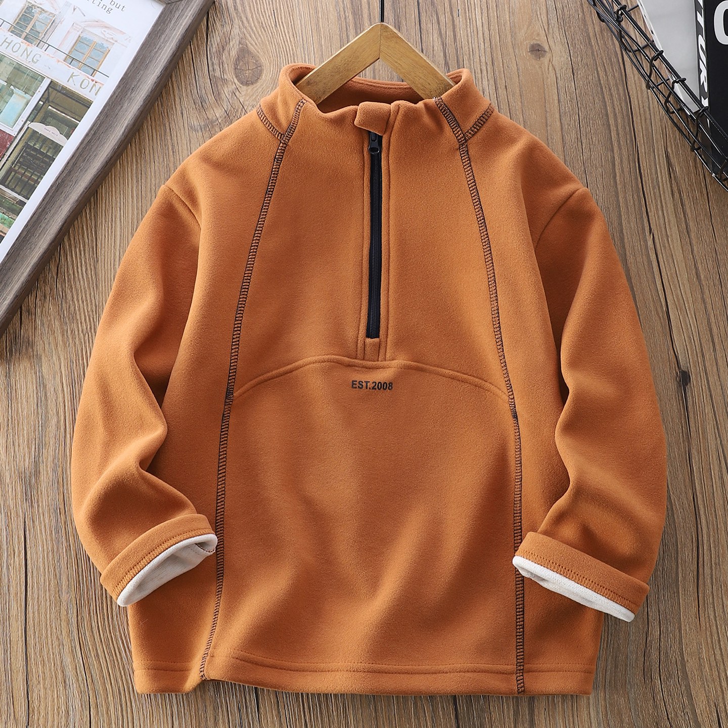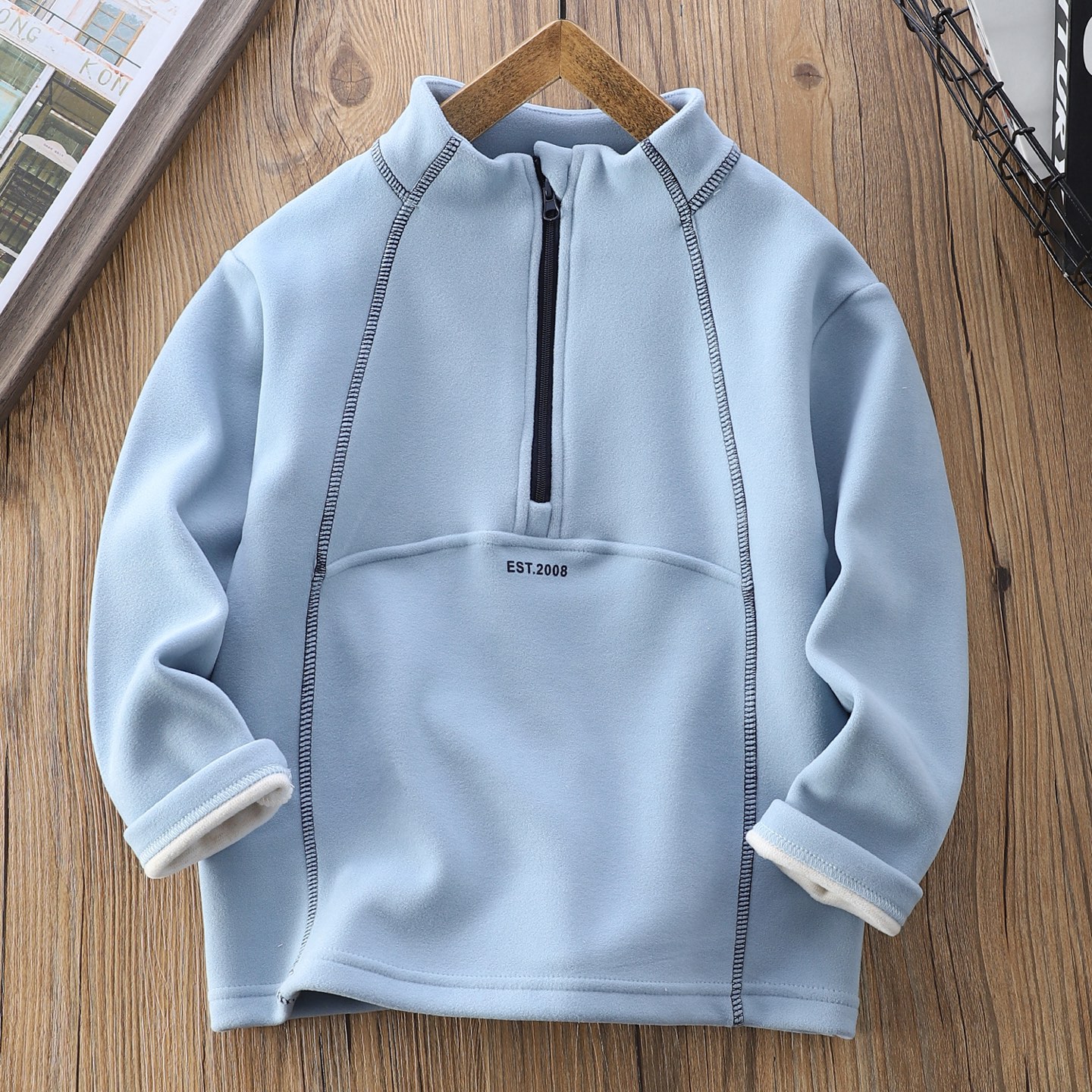 110-170男童加绒打底衫秋冬半拉链儿童加厚保暖卫衣中大童长袖