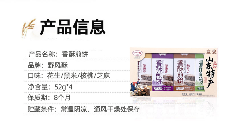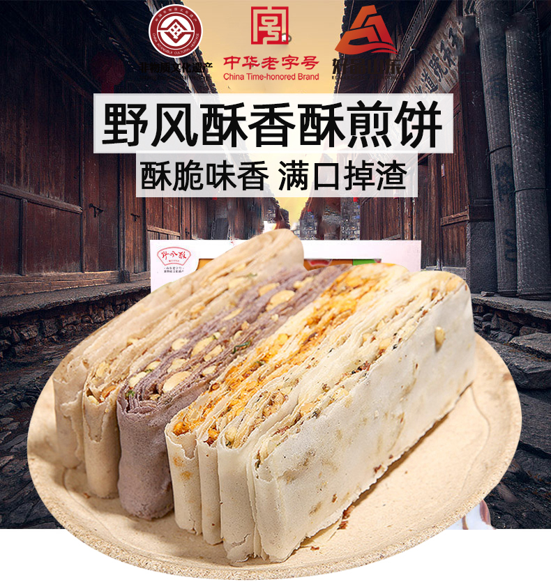 老口味山东特产野风酥香酥煎饼组合装礼盒208g 咸味夹心粗粮手工