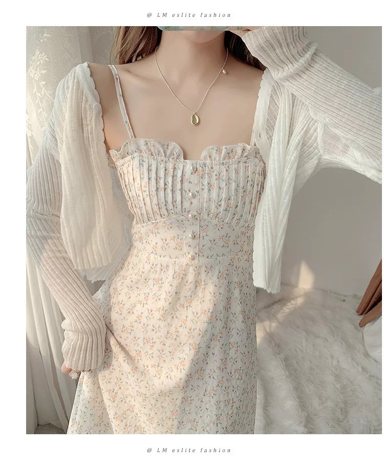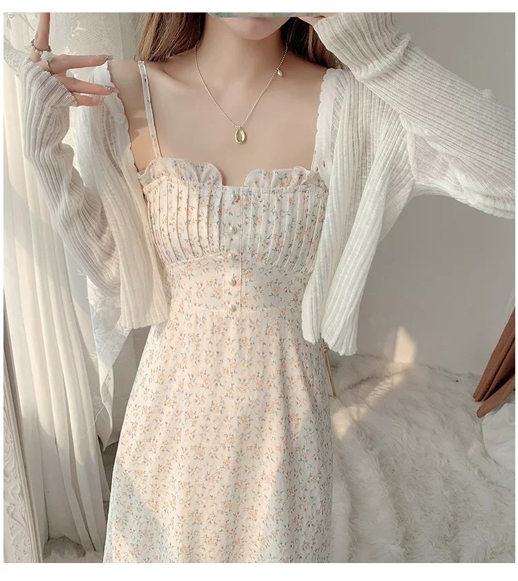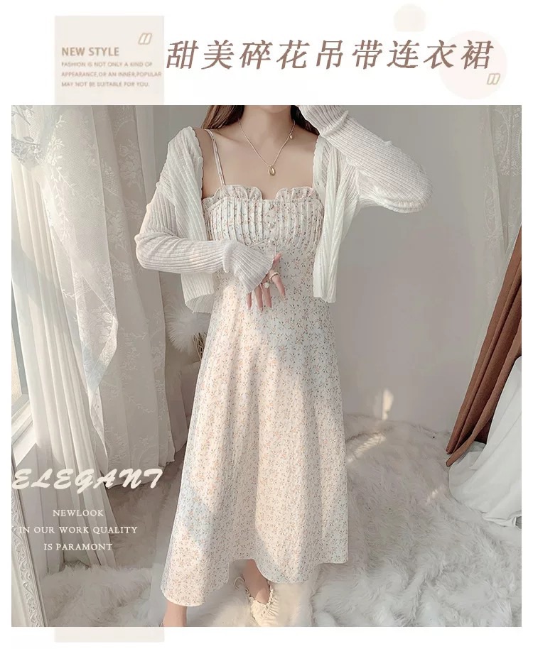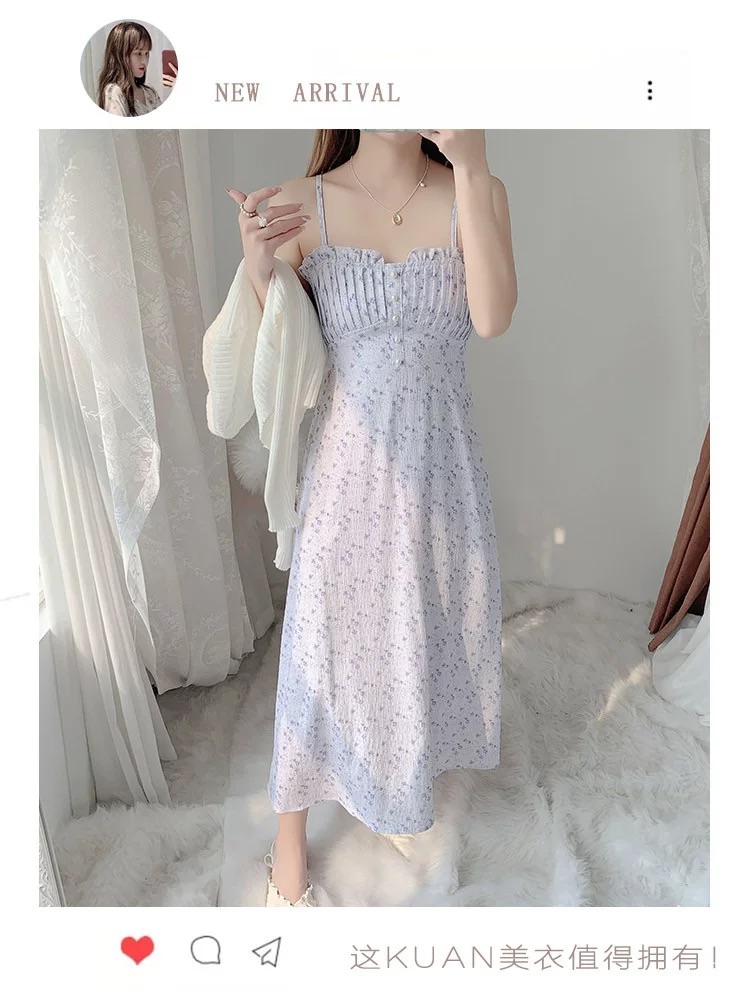 (清仓现货)【社群供G】2022夏季新款温柔风IINS淑女碎花裙吊带连衣裙