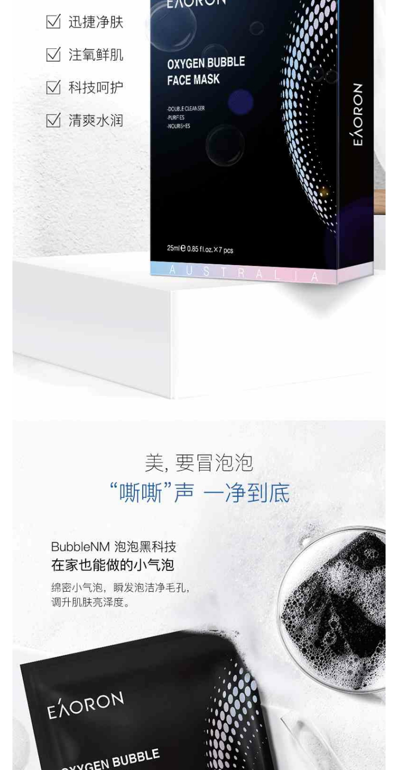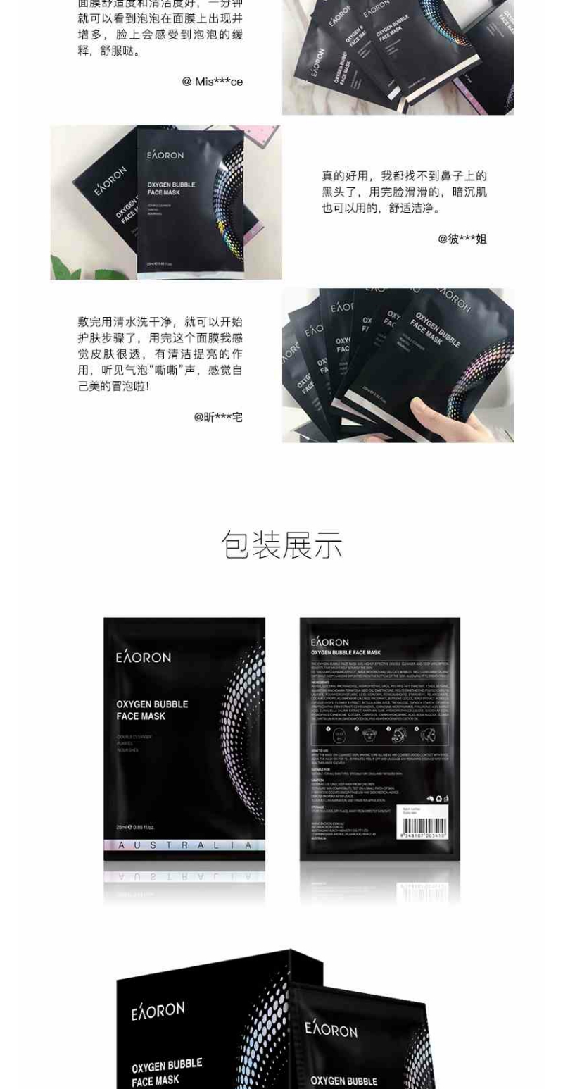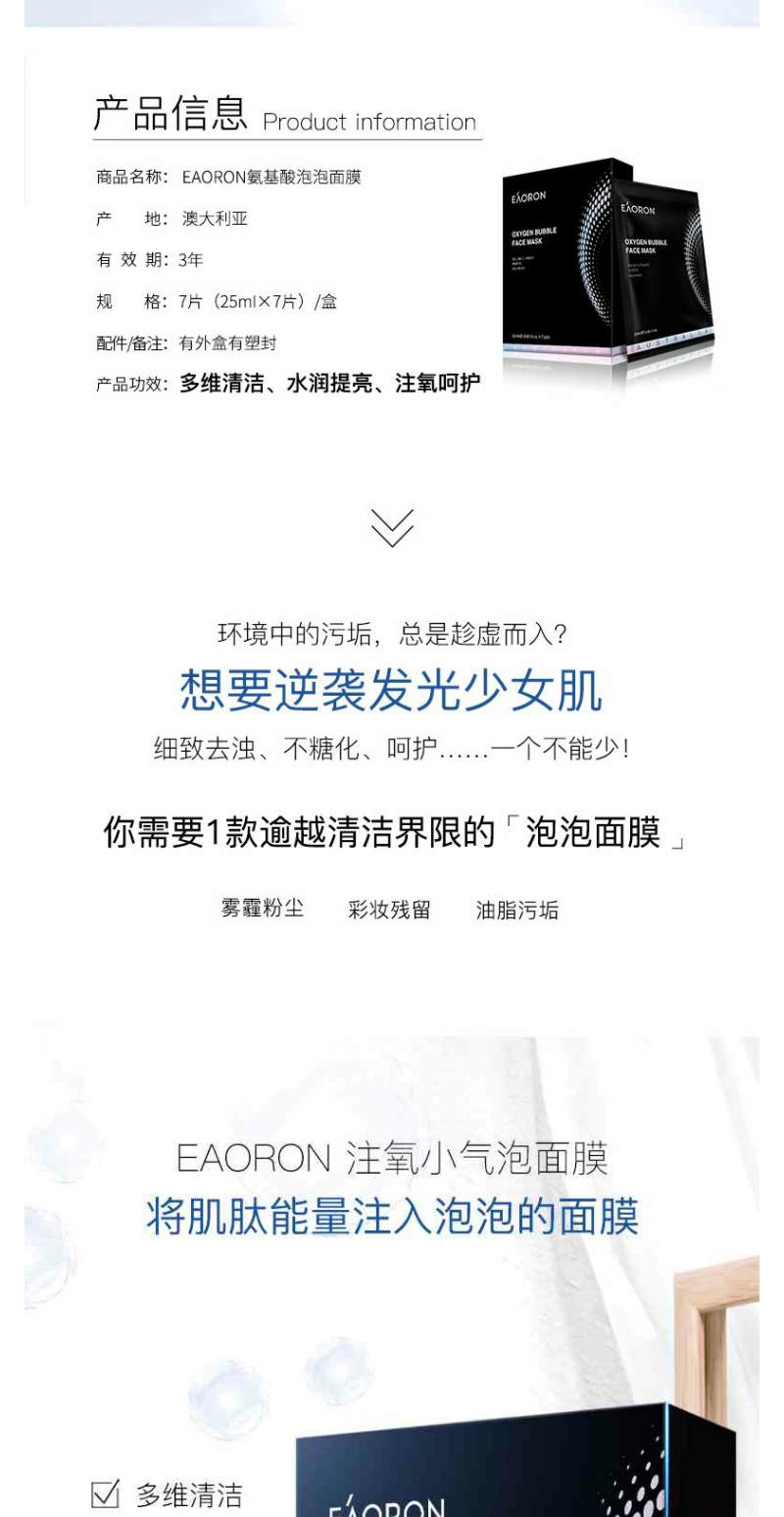 【YZ】EAORON澳容澳洲进口亮采面膜氨基酸氧气泡泡面膜 清洁补水保湿 7片装