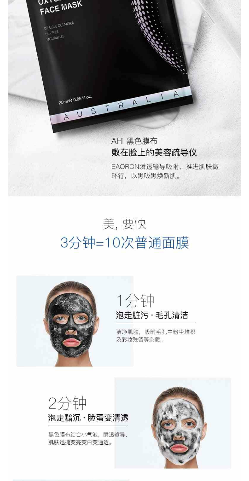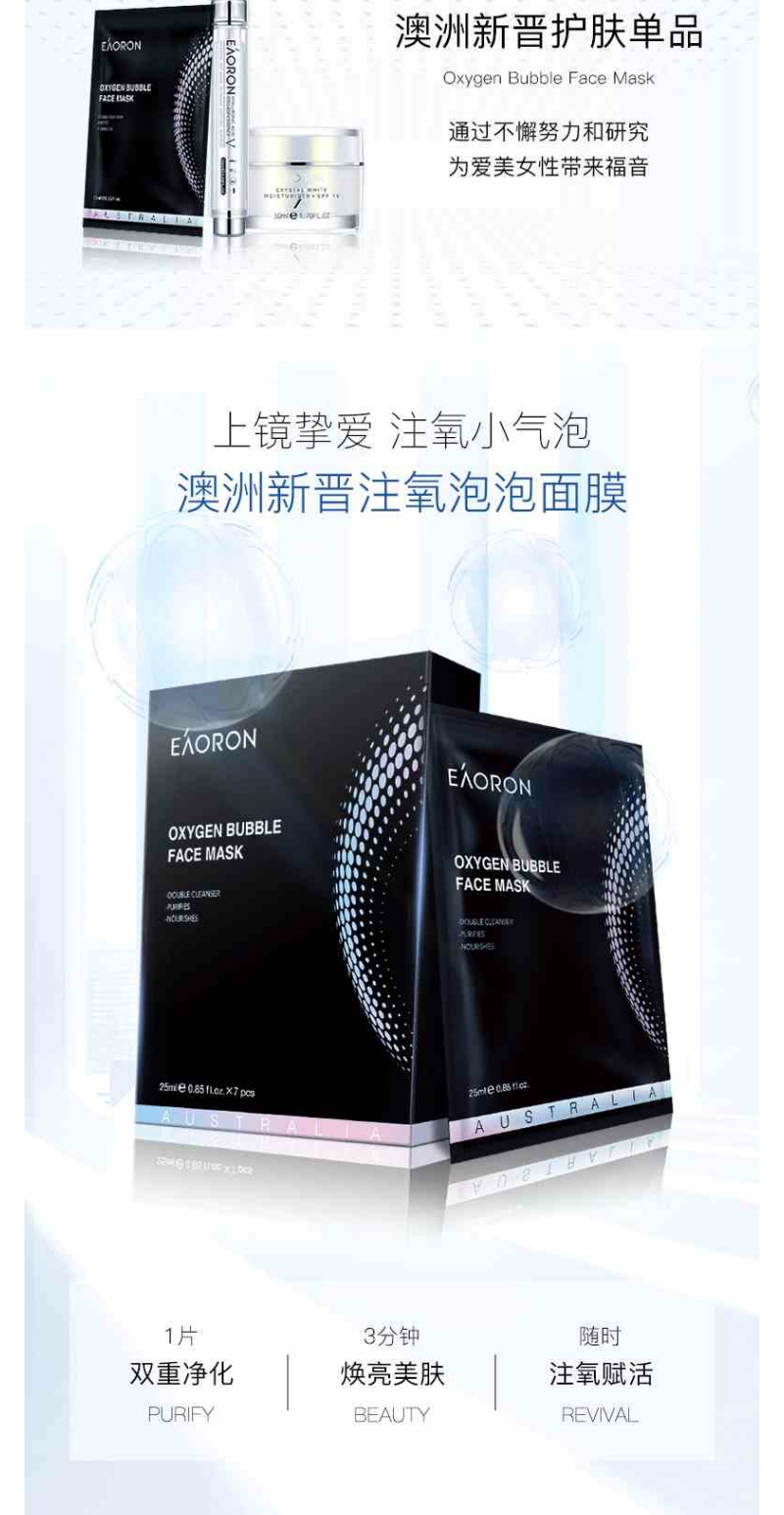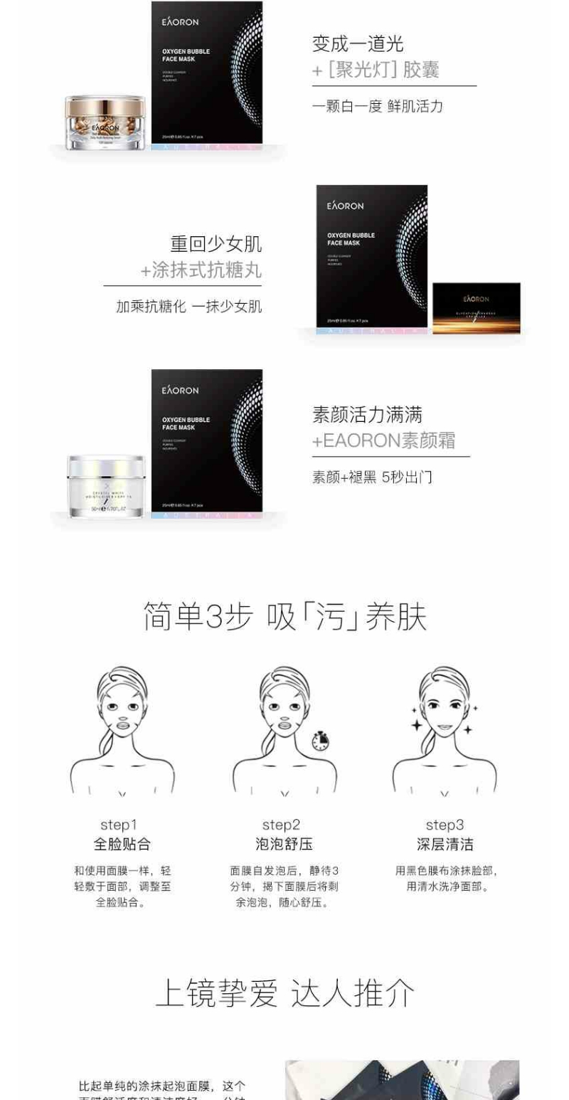 【YZ】EAORON澳容澳洲进口亮采面膜氨基酸氧气泡泡面膜 清洁补水保湿 7片装