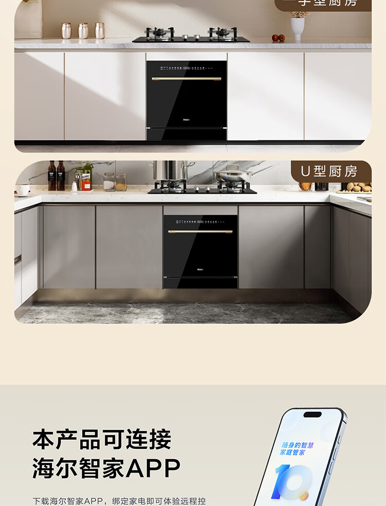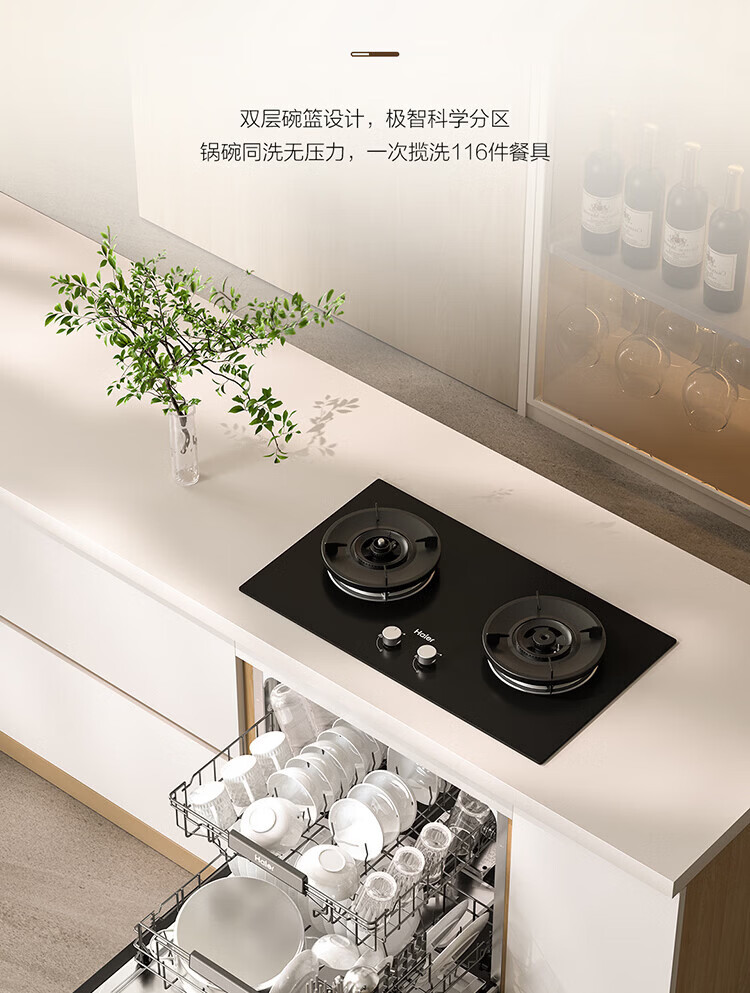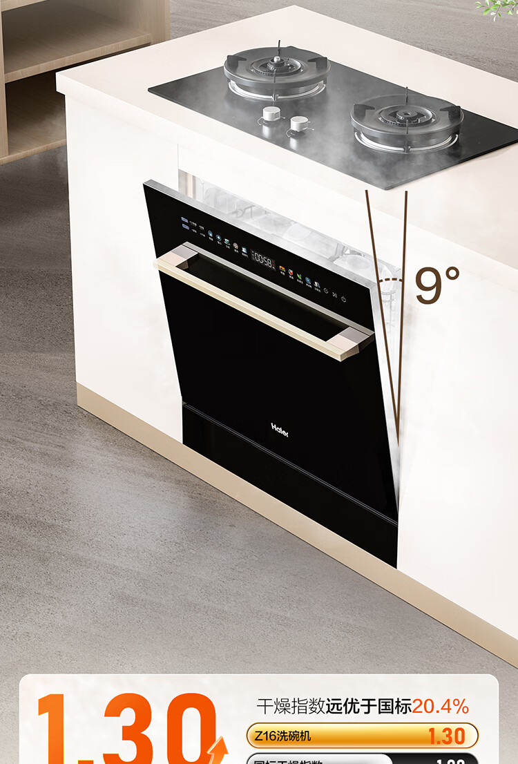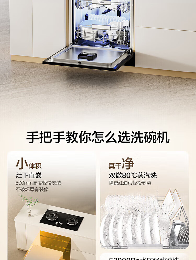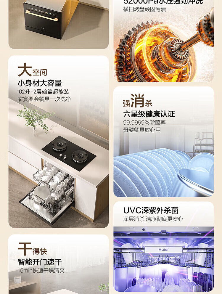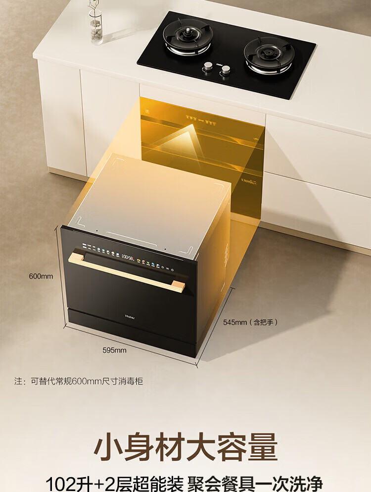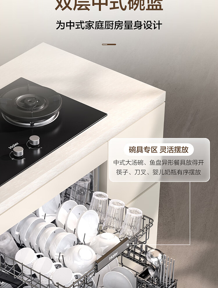 海尔(Haier)【小型灶下Z16】洗碗机嵌入式102升大容量六星消杀一级水效UV双重除菌智能开门速干EBW16585GHU1