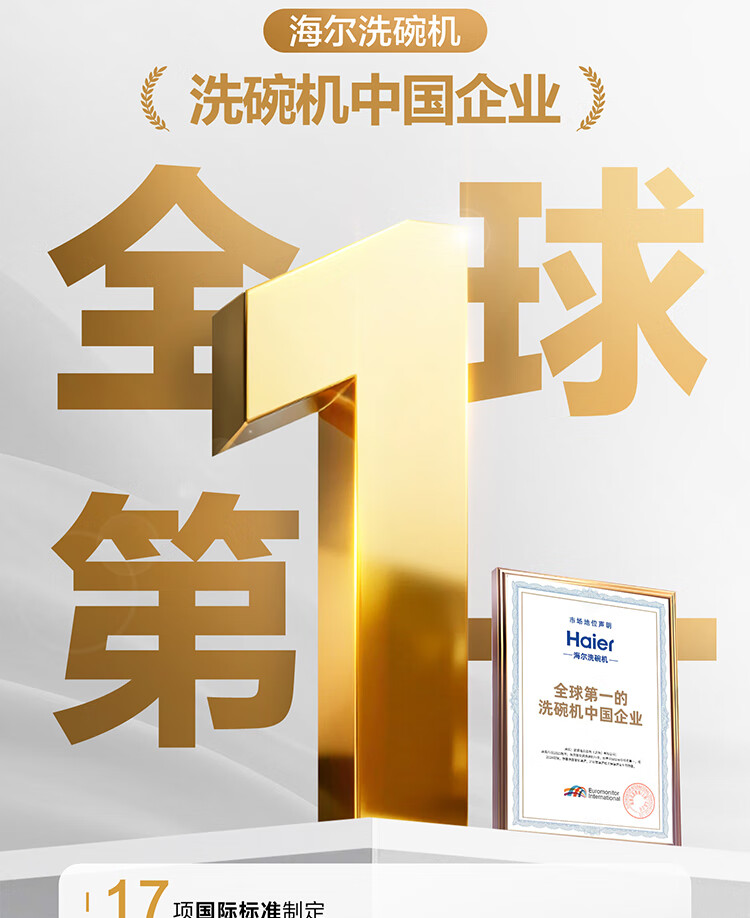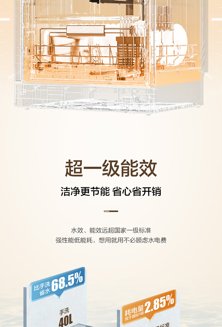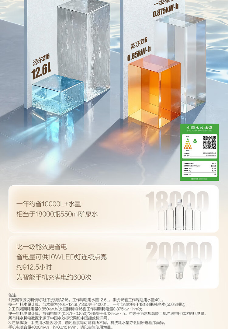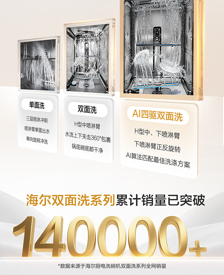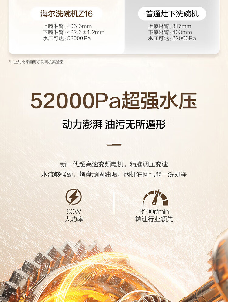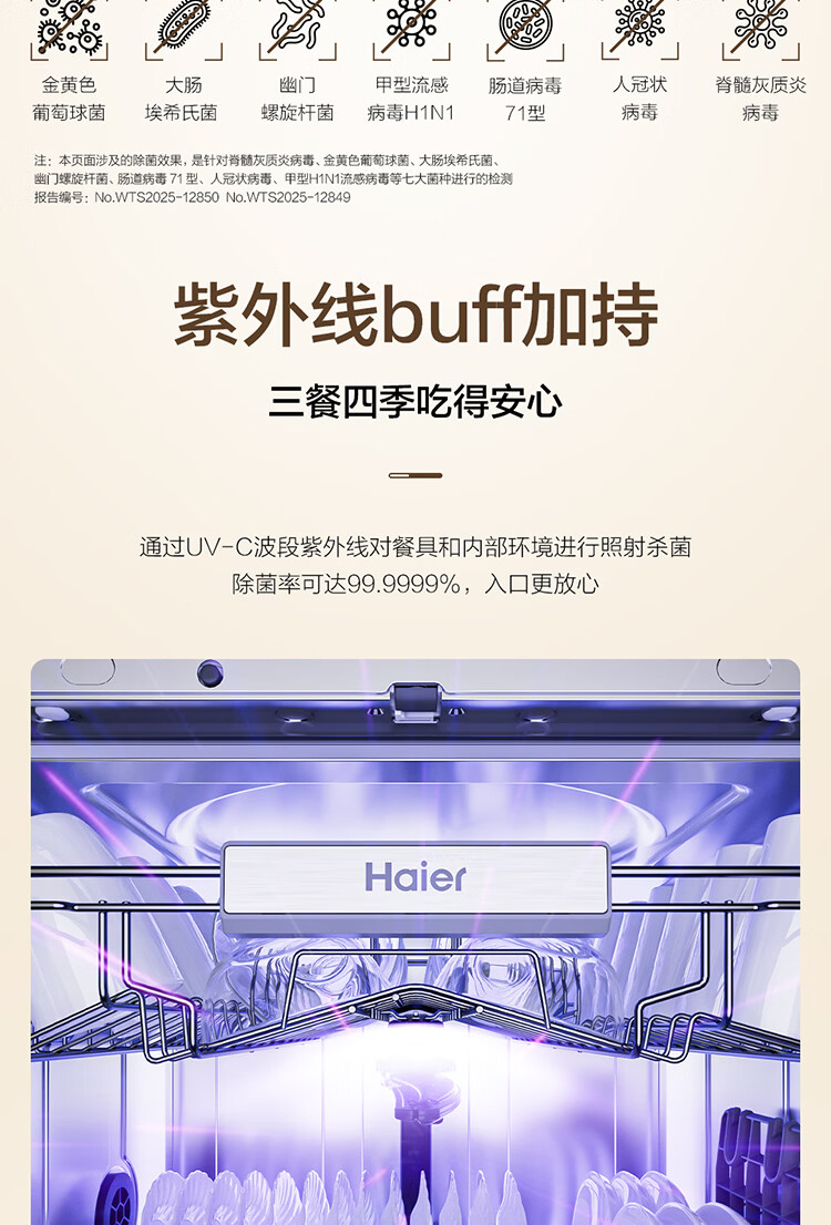 海尔(Haier)【小型灶下Z16】洗碗机嵌入式102升大容量六星消杀一级水效UV双重除菌智能开门速干EBW16585GHU1
