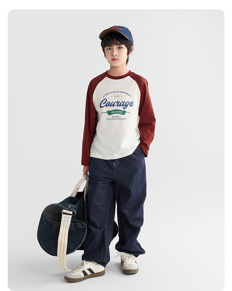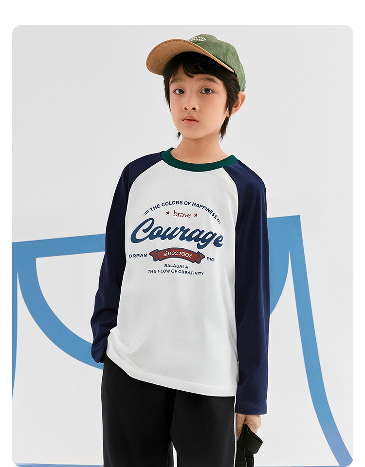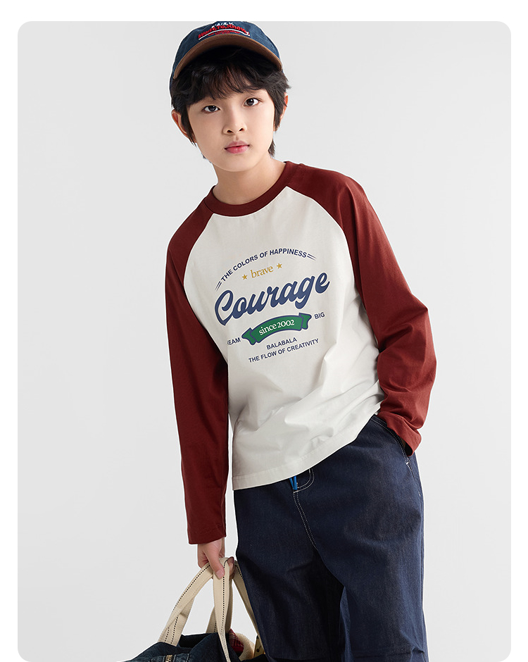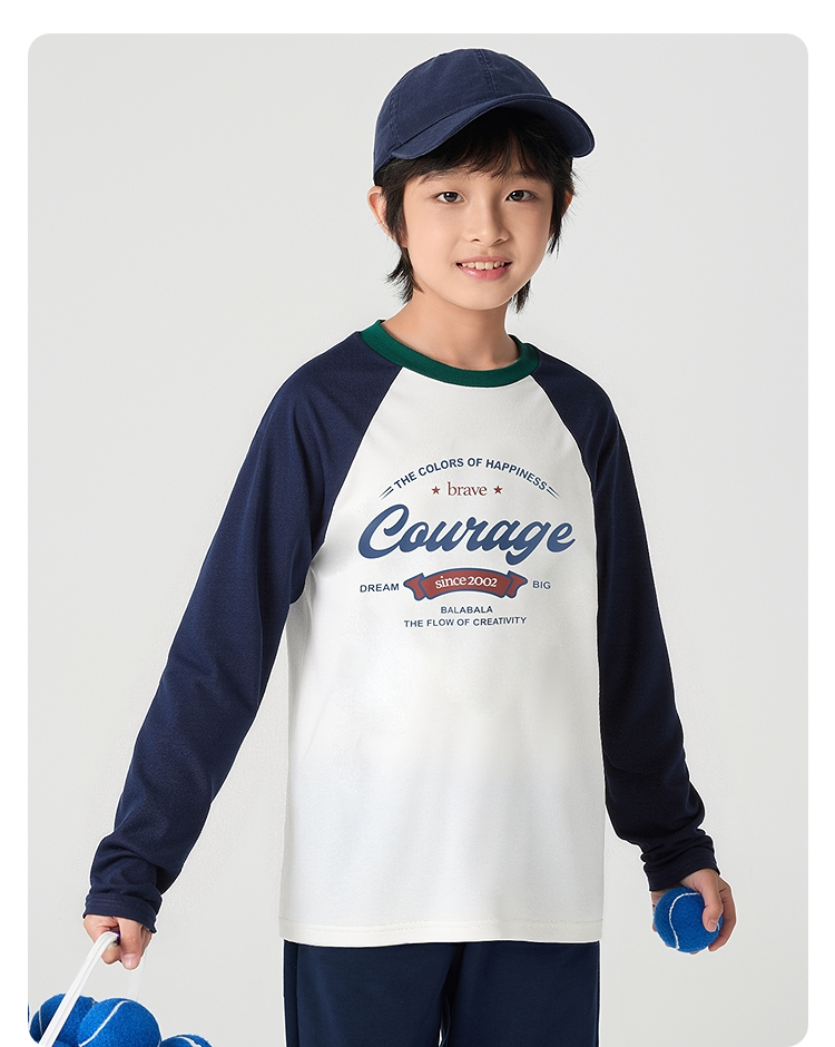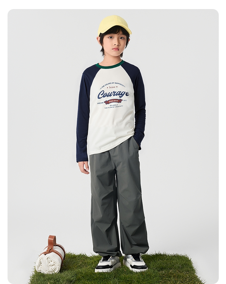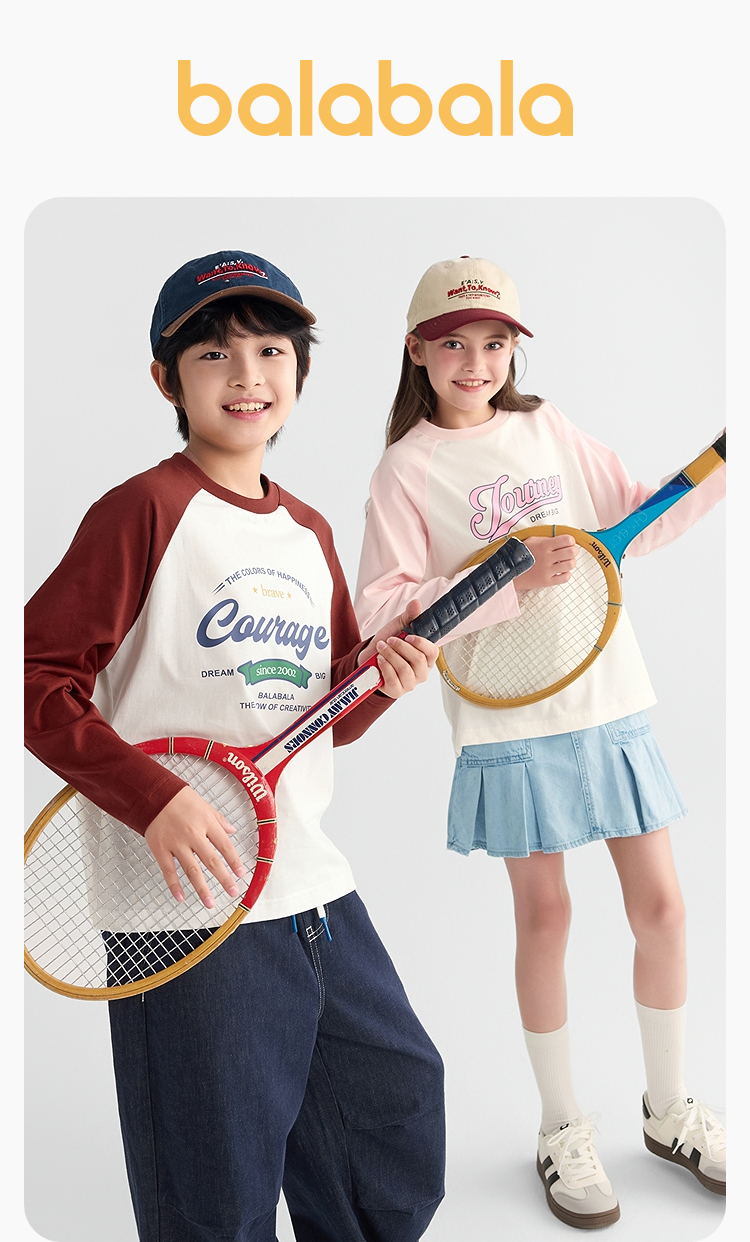 【爆品主推】巴拉巴拉童装儿童长袖t恤2025秋季新款男女童插肩袖速干纯棉上衣