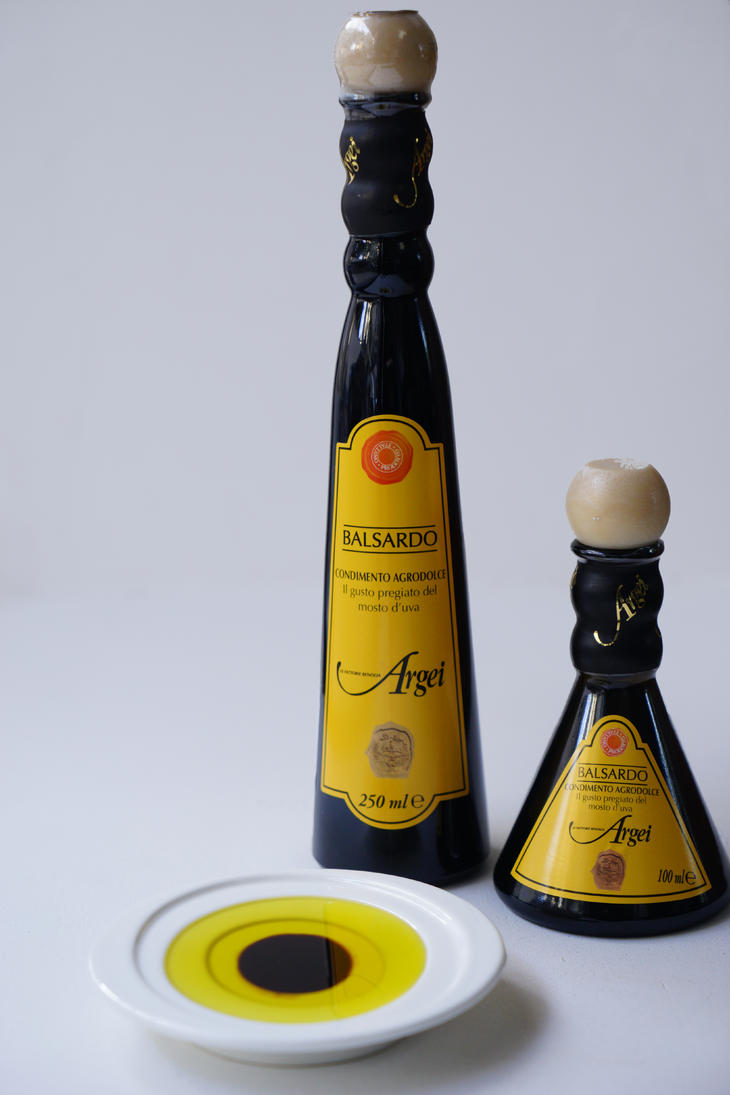 Balsardo葡萄香醋来源于葡萄酒醋和浓缩葡萄果汁,两者在木桶中经过自然发酵数年的陈年后,得到酸甜可口,果味芬芳的葡萄香醋。