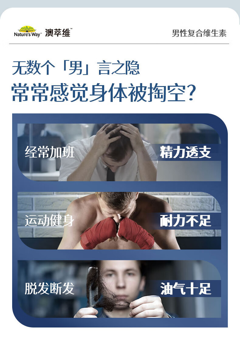 佳思敏(Nature's Way)澳萃维 男性复 合 维生素软糖 100粒/瓶 含多种维生素B族维C镁锌硒生物素 【15种男性营养】