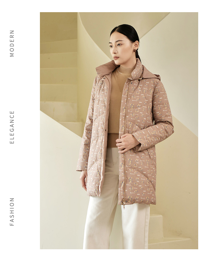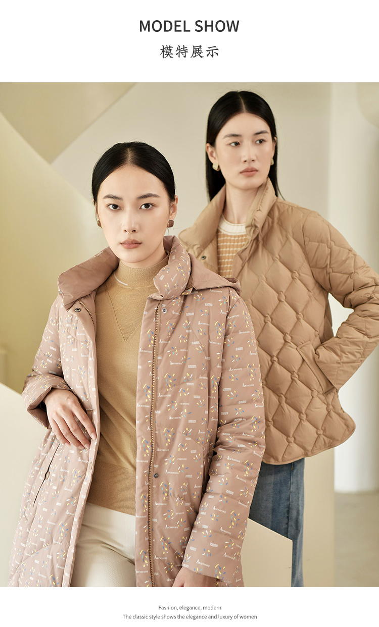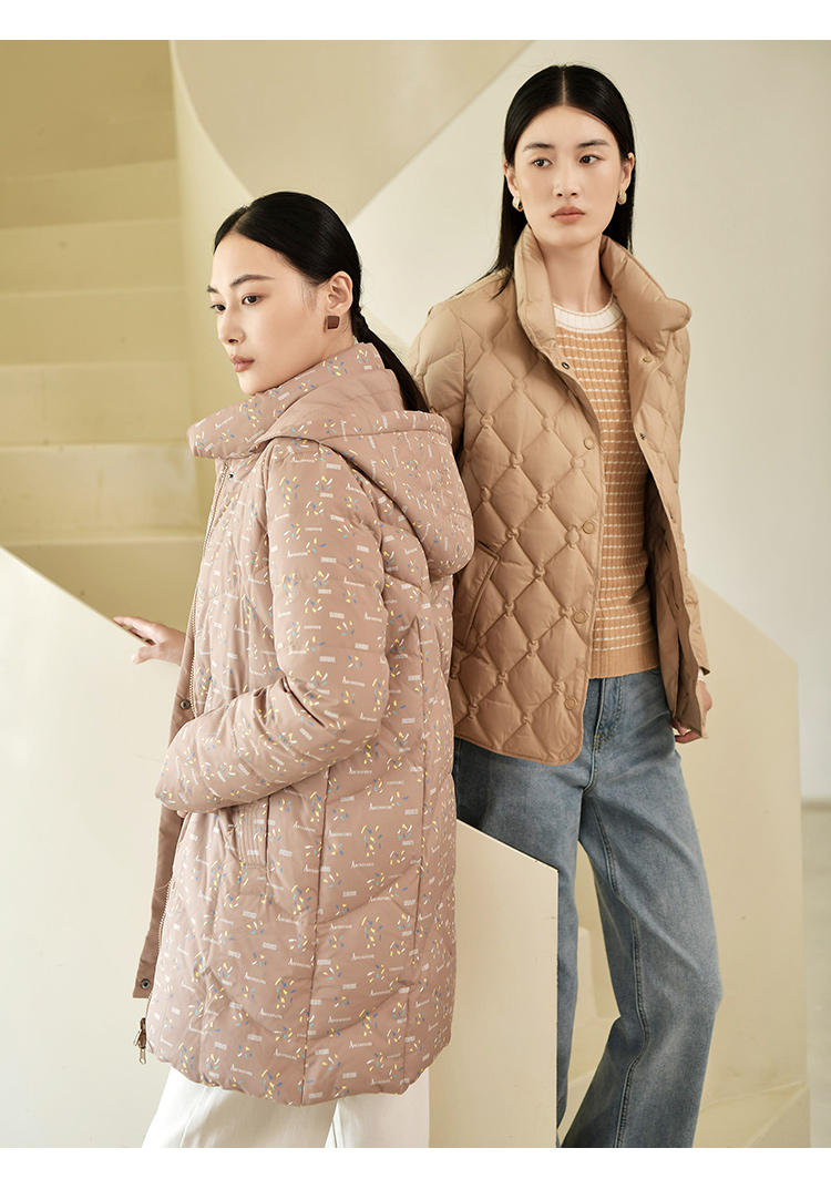 佐尔美2022冬季新款 经典防风印花两件套松紧腰羽绒服女E24YY11