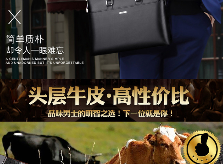七匹狼 男包手提包男单肩包头层牛皮商务包休闲软皮斜跨包横款 14英寸电脑包情人节生日礼物 1A3464054-01黑色