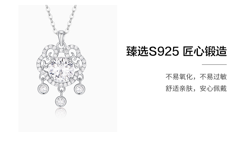 卡蒂罗/KADER 如意福牌系列 璀璨平安锁项链 925银新中式国潮镂空祥云古典好运可调节锁骨链 纳福吉祥灵动闪耀