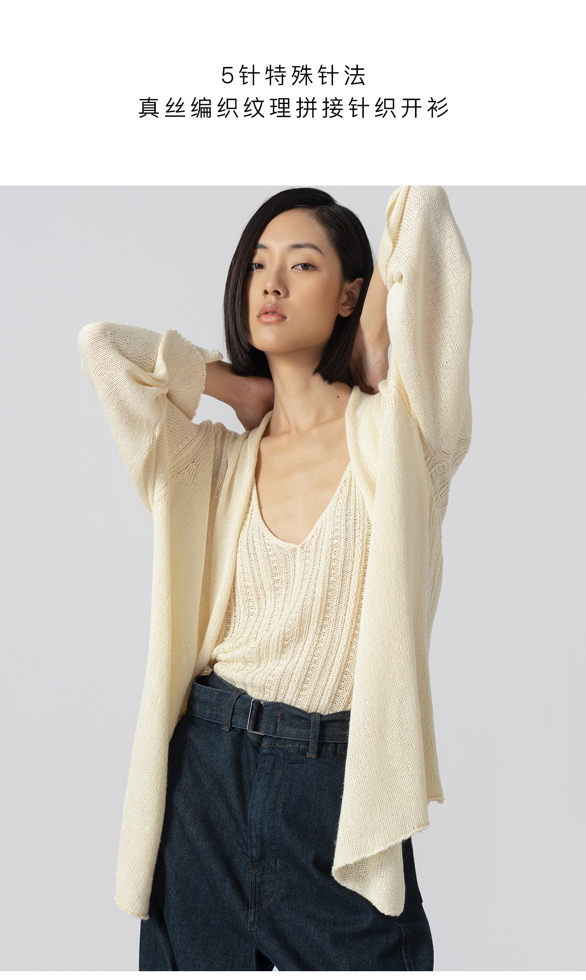 322工房经典再造真丝长袖针织开衫2023新春夏轻薄空调衫外套B065
