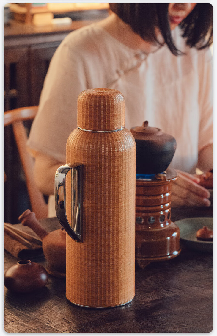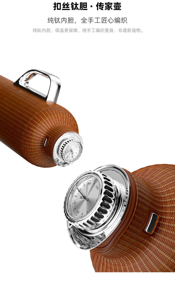 学古 一原传家壶 竹雅传家壶 非遗扣丝竹编纯钛限量收藏保温壶