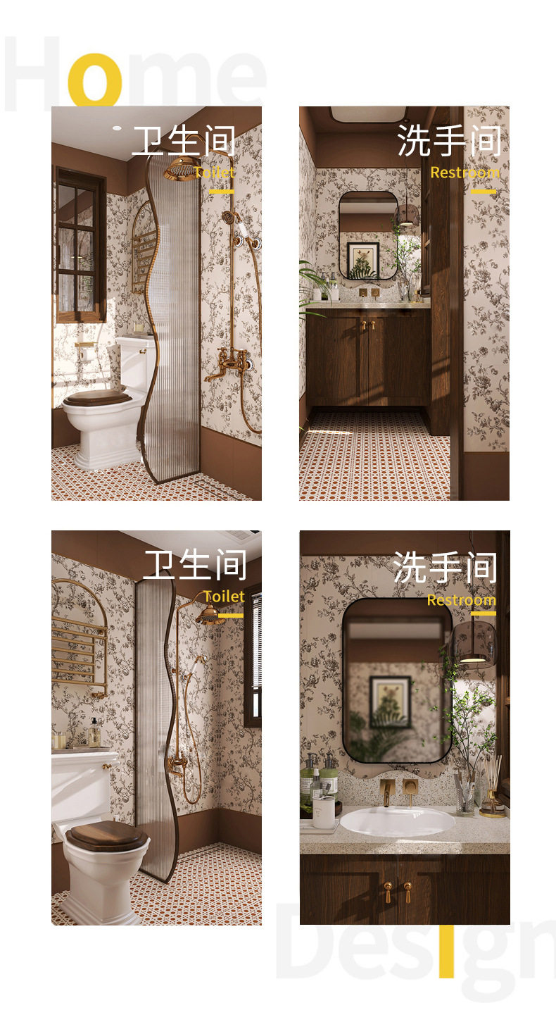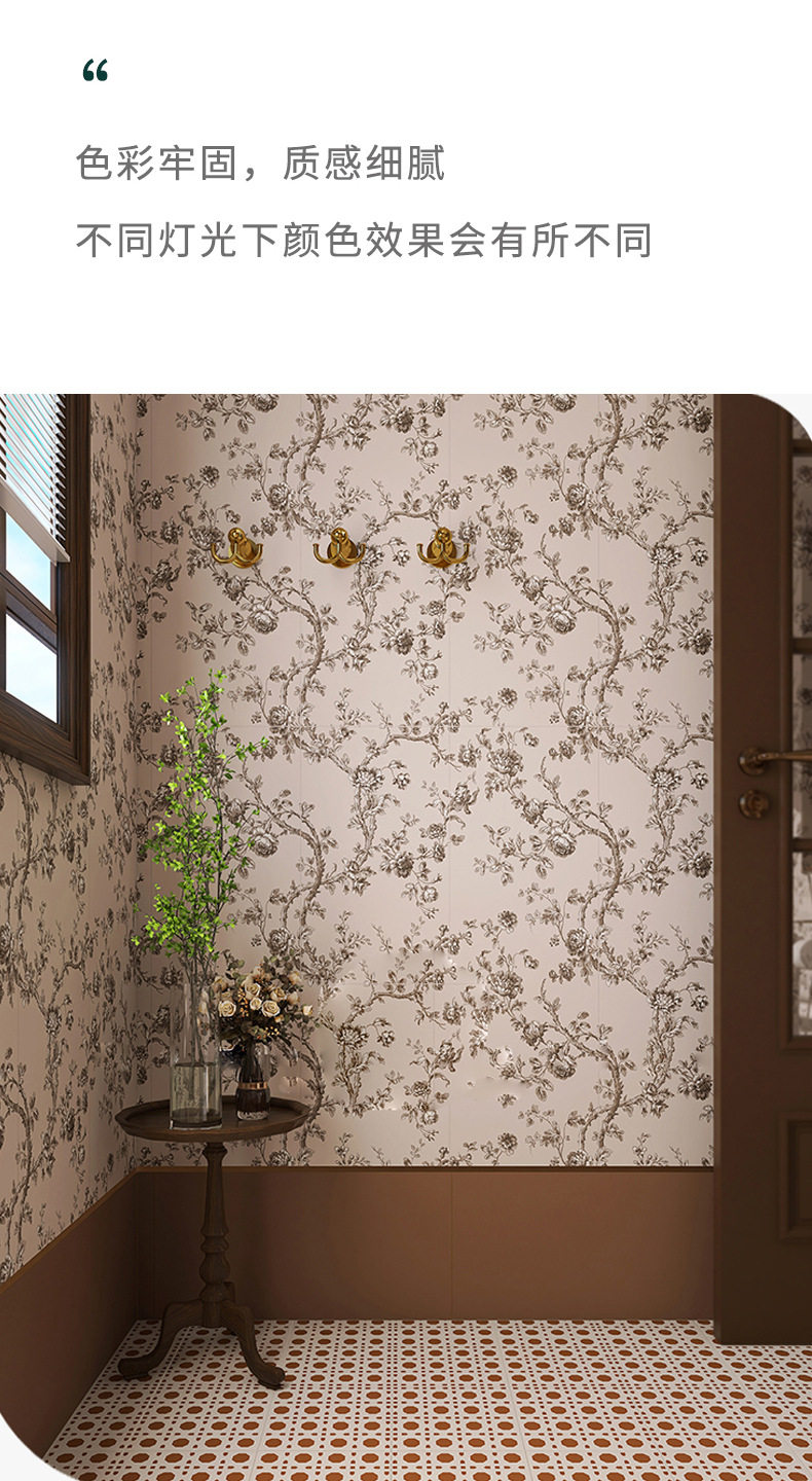 玫瑰花厨房枝蔓墙砖浴室法式300900地砖砖卫生间瓷砖复古厕所粉色 商品图4