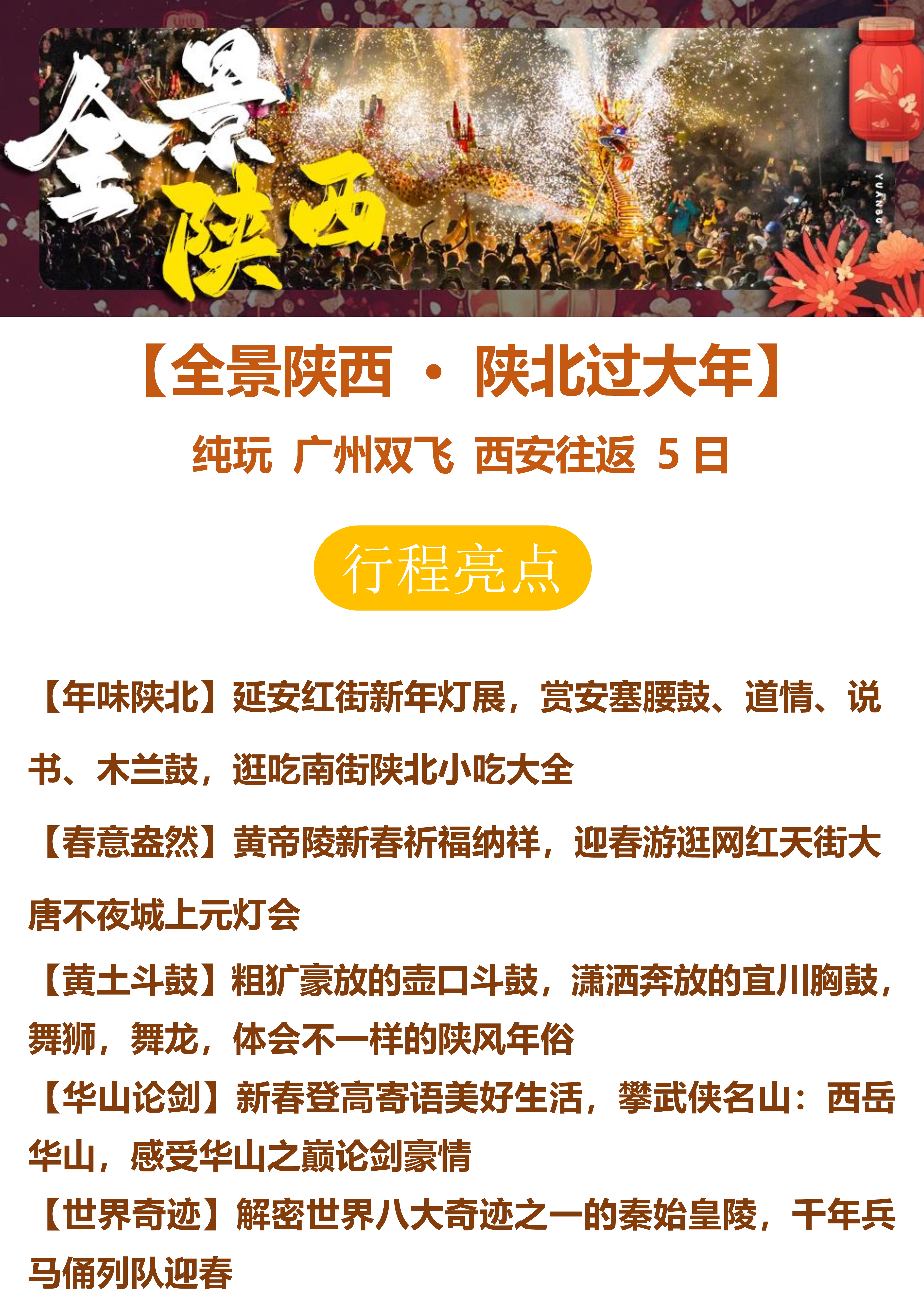 【全景陕西 · 陕北过大年】 纯玩 广州双飞 西安往返 5日