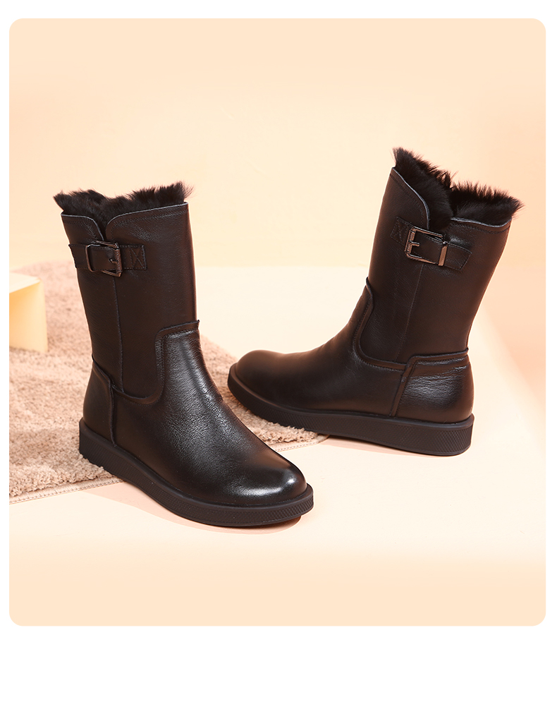 Signew/信诺 新款加绒保暖棉靴真皮软底舒适妈妈鞋 8M280-26